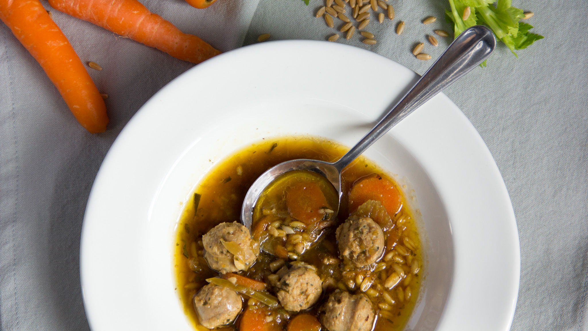 A tasty broth with garlic sausage and vegetables. Spelt is a grain which is becoming widely available because of its high fibre content. You could try barley or bulgur wheat instead, these nutty-tasting grains add bulk to a broth, transforming a regular bowl of soup into a filling and healthy meal.