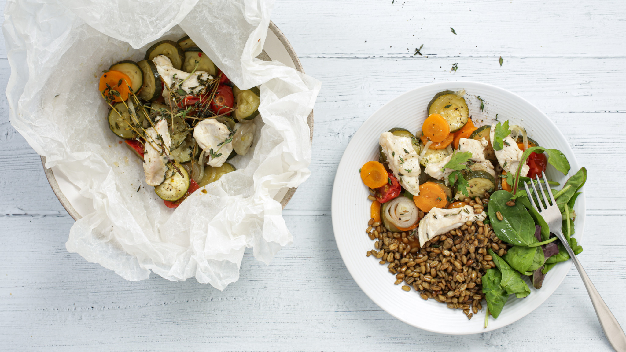 This recipe uses the steamer tray attachment to cook a parcel of chicken and vegetables. This French cooking technique ensures succulent chicken and retains more of the nutrients from the fresh vegetables.