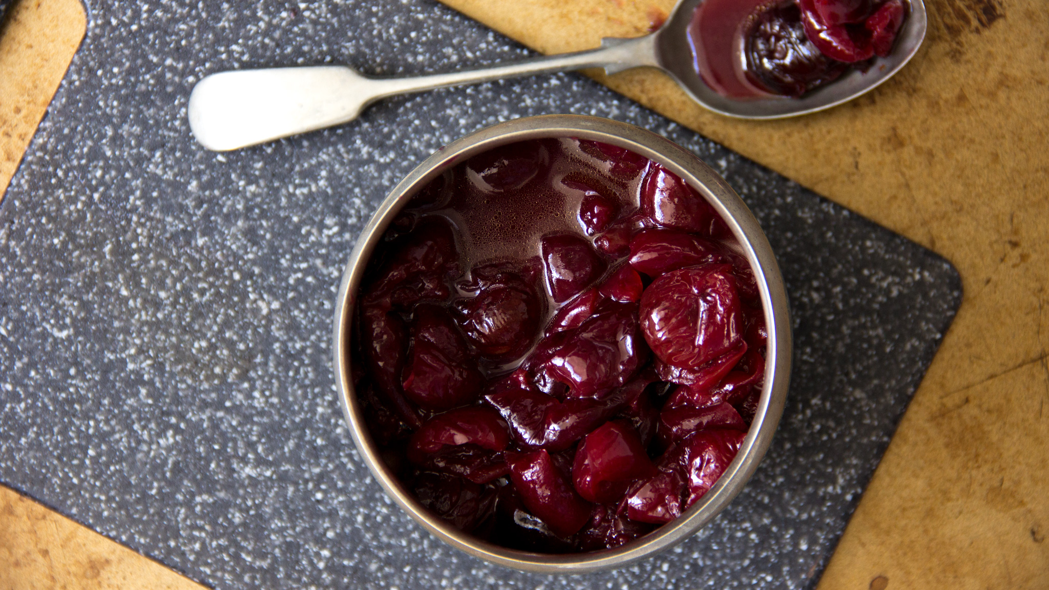 Cherry and Red Wine Compote. Try serving with duck, beef or gammon, alternatively serve with meringues and cream as a dessert.
