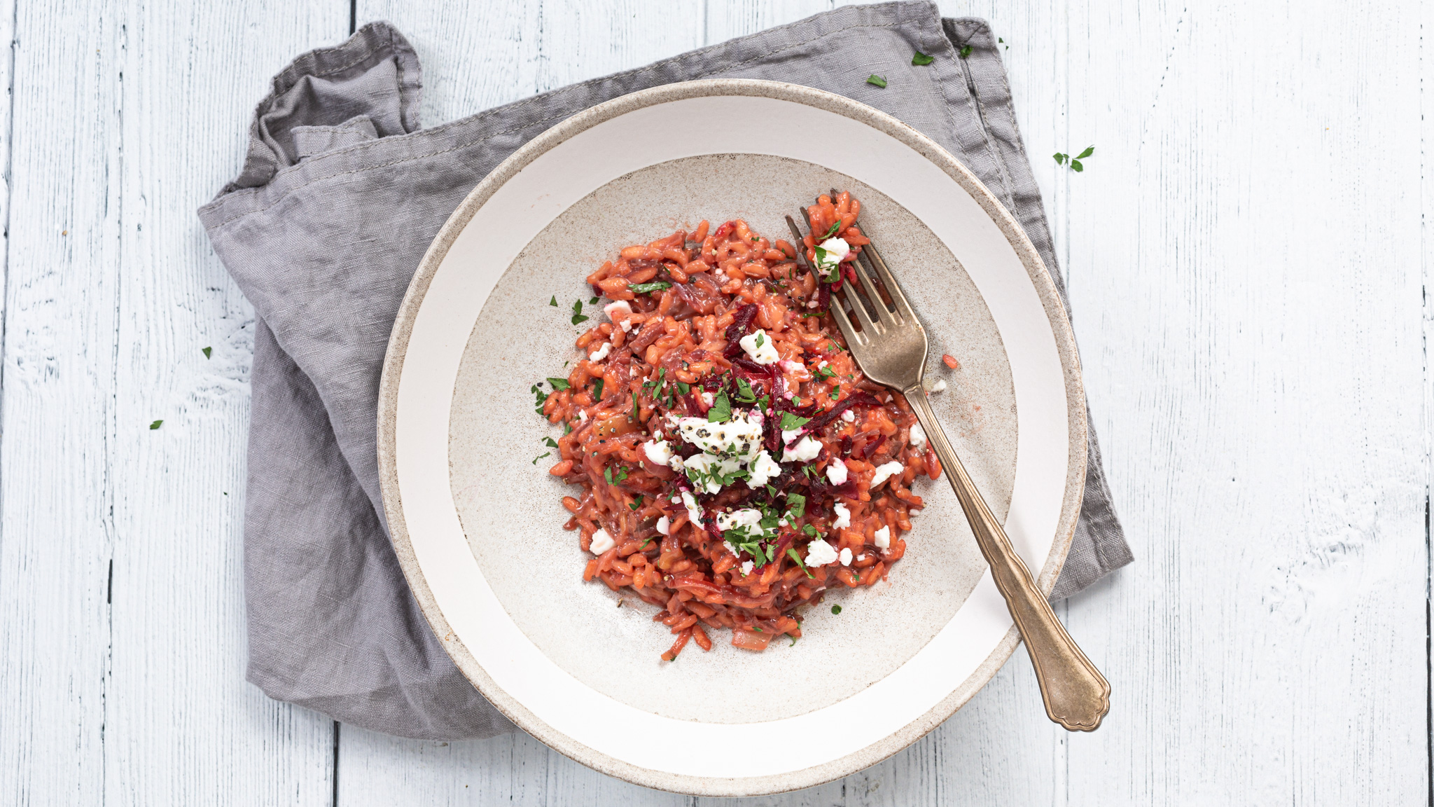 Dazzlingly pink and packed with rich, creamy flavours, this easy risotto recipe is made with ready-cooked beetroot. Try serving it topped with goats cheese or feta.