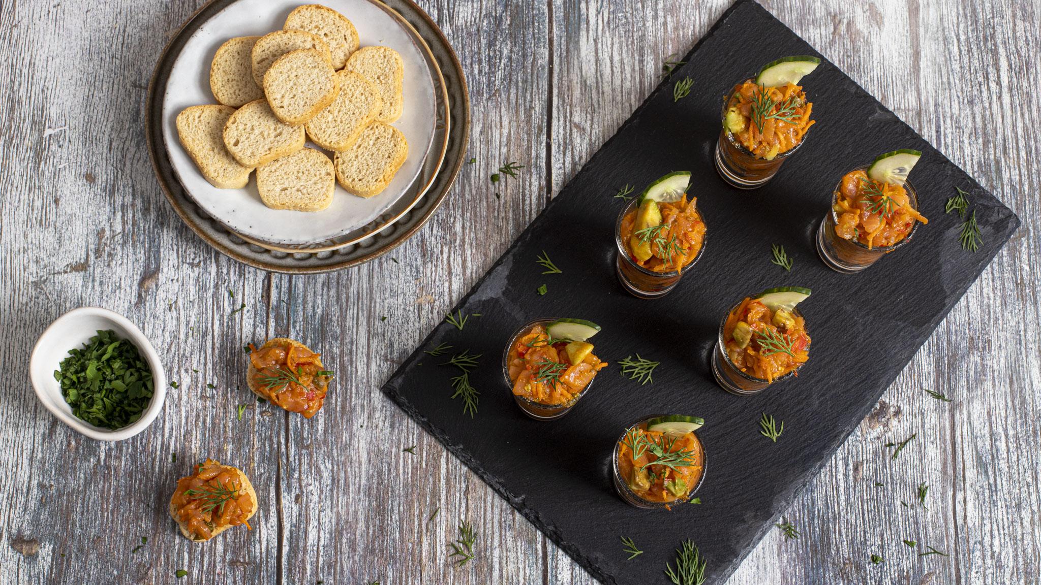 A fresh, light pate. Delightful for canapes, starters or a light lunch. Serve on toasted sliced baguette.