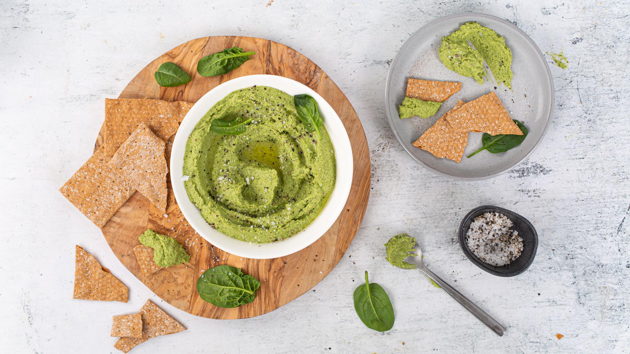 A twist on the traditional houmous recipe, serve with pitta breads or vegetable sticks.