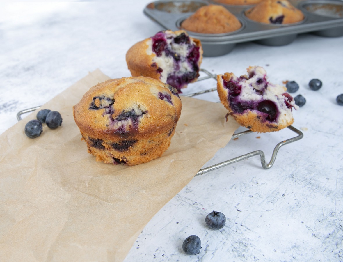 Quick and easy blueberry muffins that taste great served warm or eaten cold.