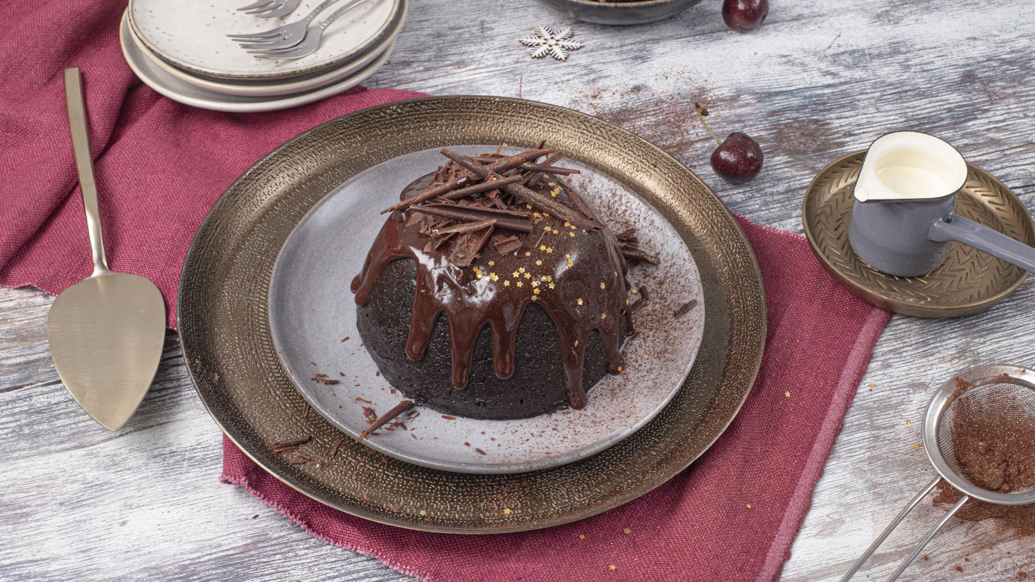 This chocolate pudding is an alternative to the traditional Christmas pudding.