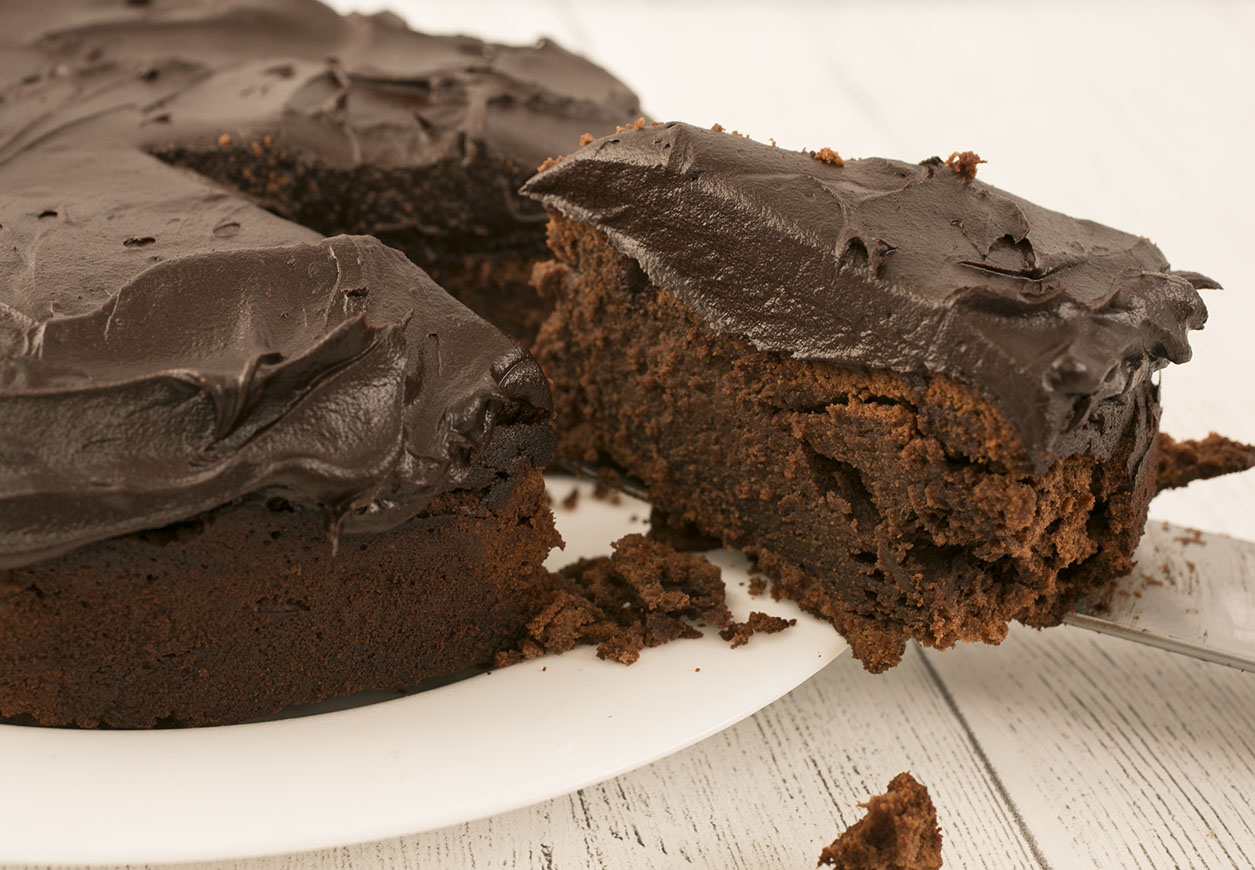 Cacao is the less processed form of cocoa powder so it has a more intense, bitter chocolate flavour. This results in a deeply chocolaty cake. We've served ours with our Vegan Fudge Icing.