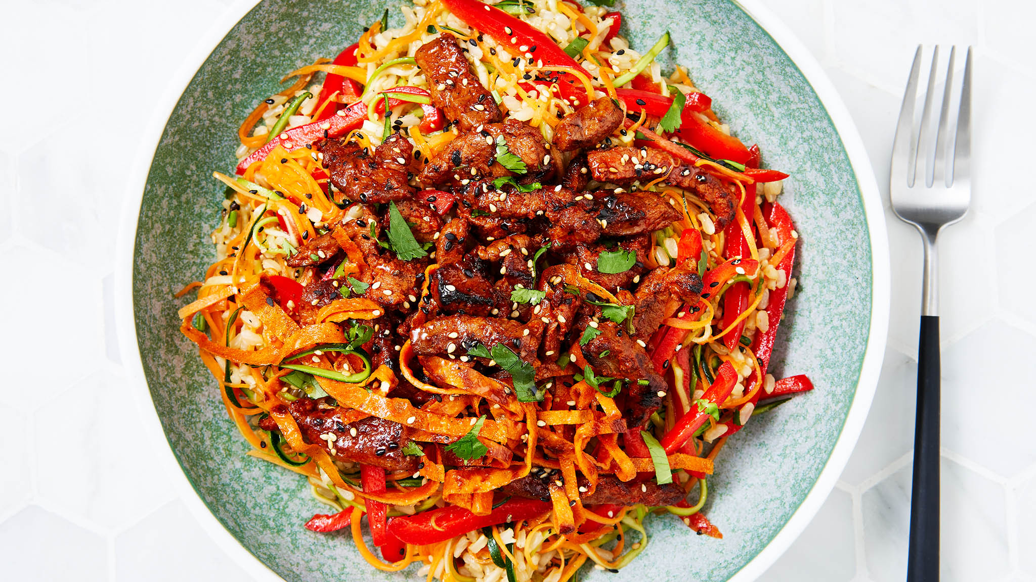 Korean Beef Rice Bowl with Rainbow Vegetables