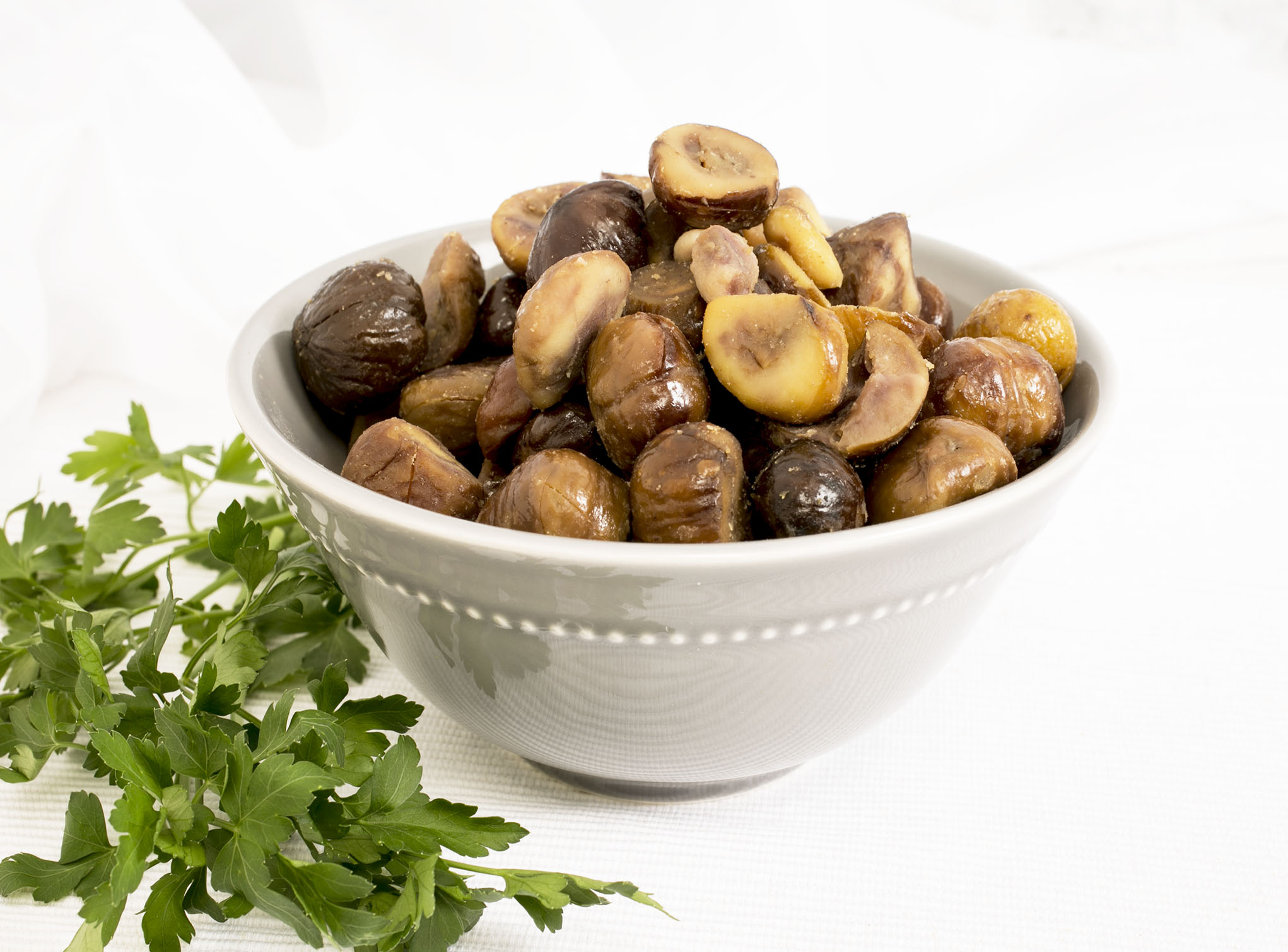 This side dish goes great with roasted meat. You can use frozen chestnuts but make sure to defrost them before cooking.