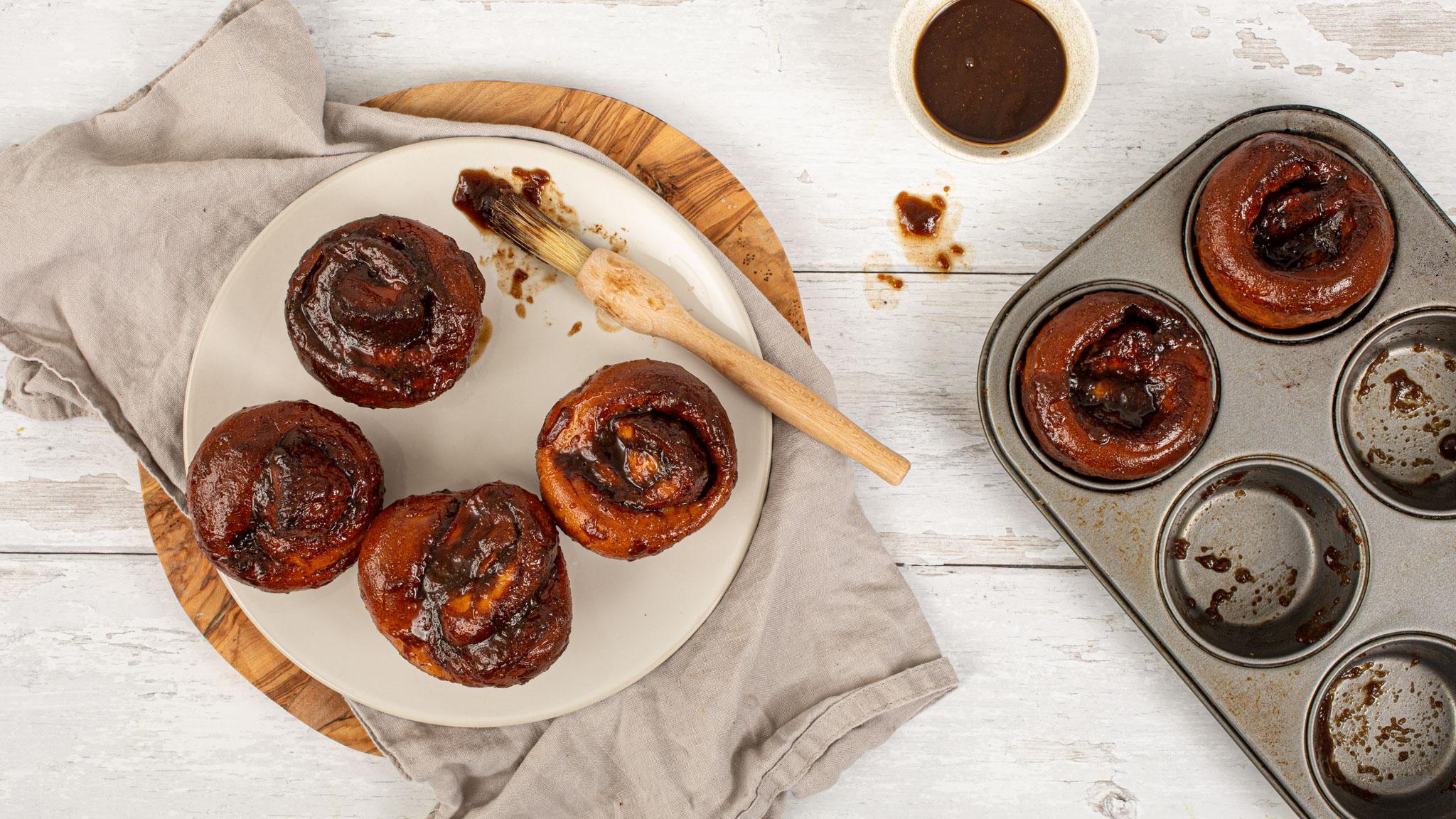 A very indulgent treat of fluffy, soft and delicious cinnamon rolls with a super sticky cinnamon glaze. You can freeze these buns after baking so you always have a supply of home-made cinnamon buns to hand, simply warm through in the oven and add the glaze.