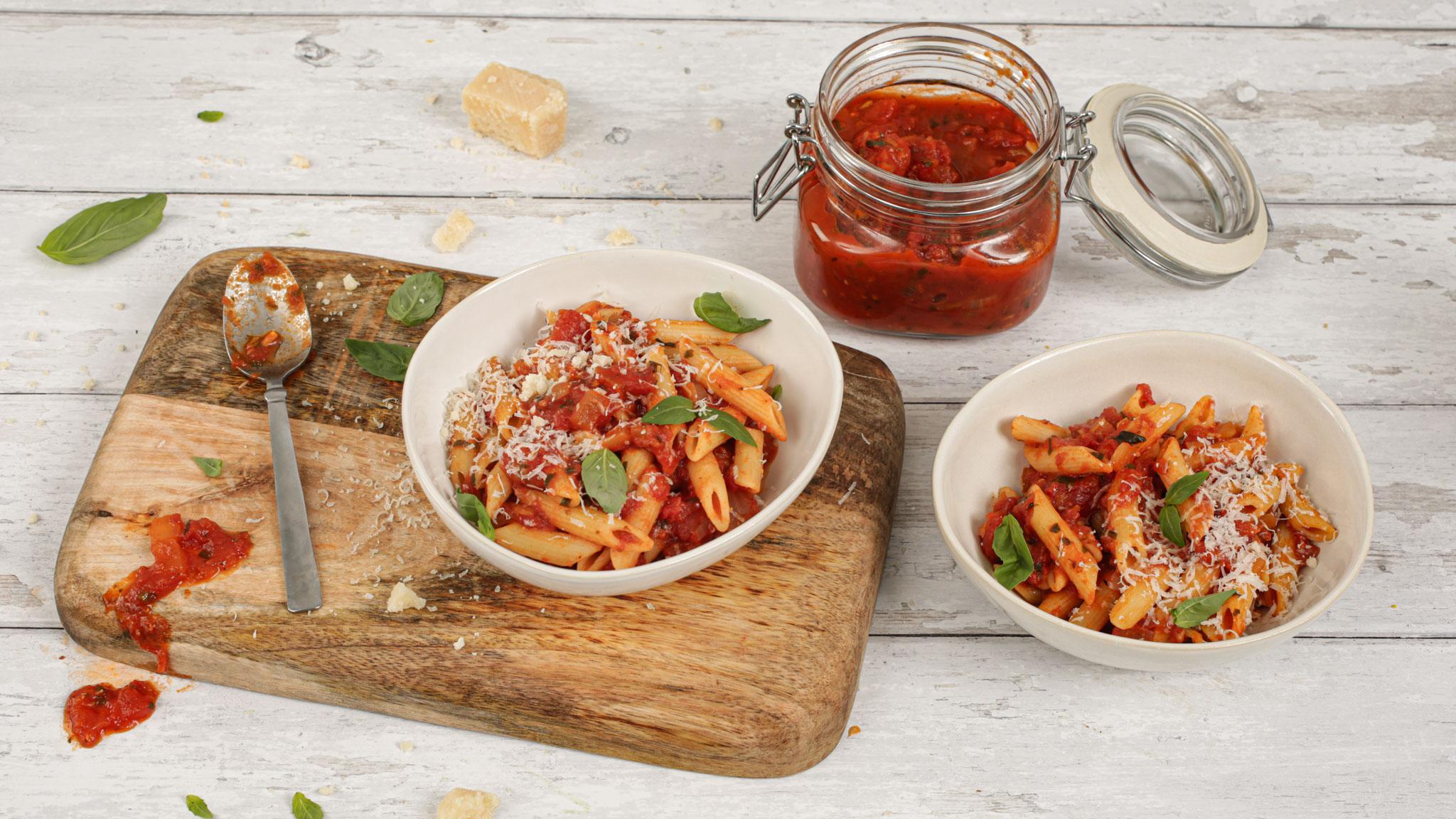 This tomato sauce is simple but so delicious. Use as a base for pizza, in bolognaise for lasagne or simply on fusilli pasta.