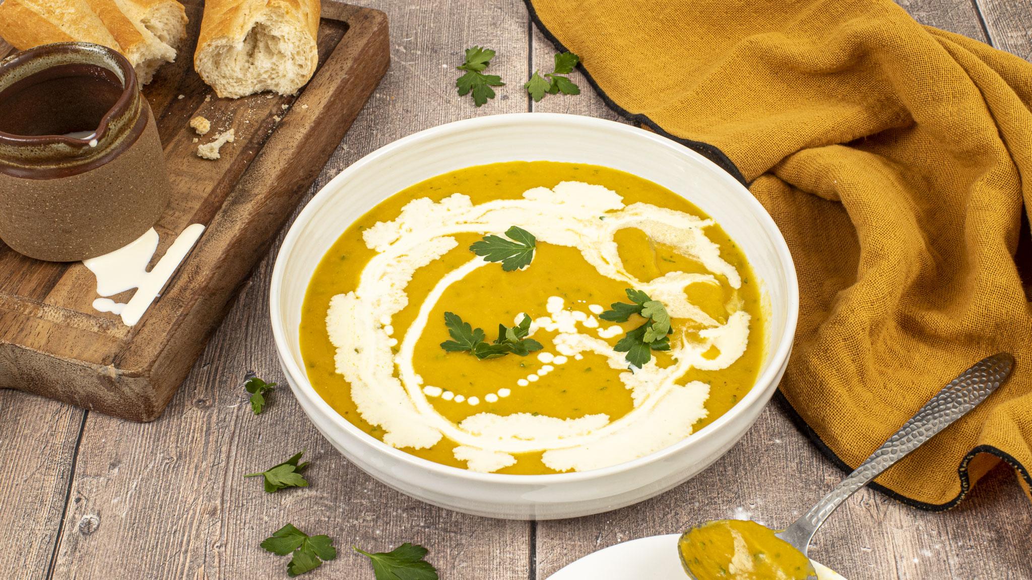 1. Add onion, carrot, butternut squash, ground cumin, fresh thyme, salt & pepper, vegetable stock and fresh parsley to the SoupEasy Goblet