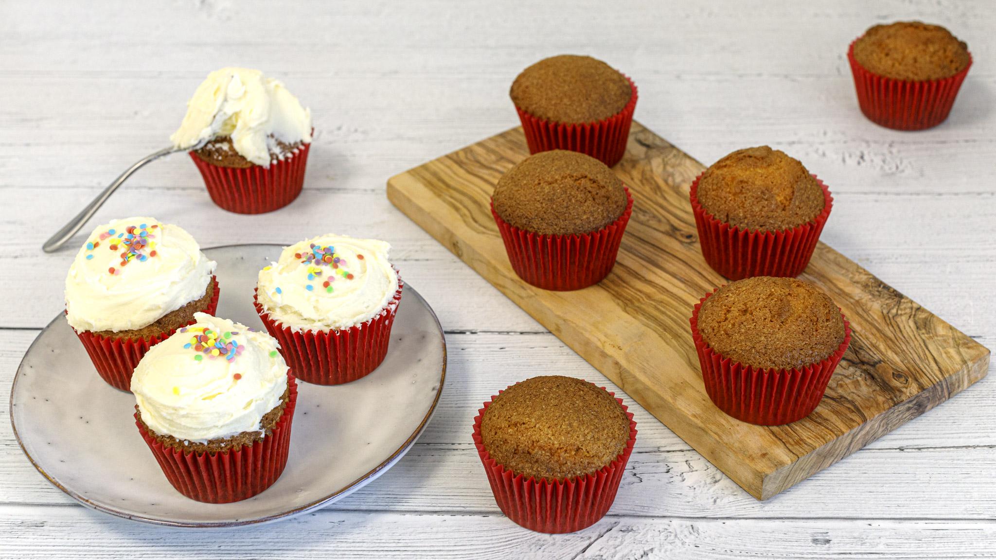 These basic cupcakes are easy to make and perfect to bake with children. Decorate with our butter icing and sprinkles.