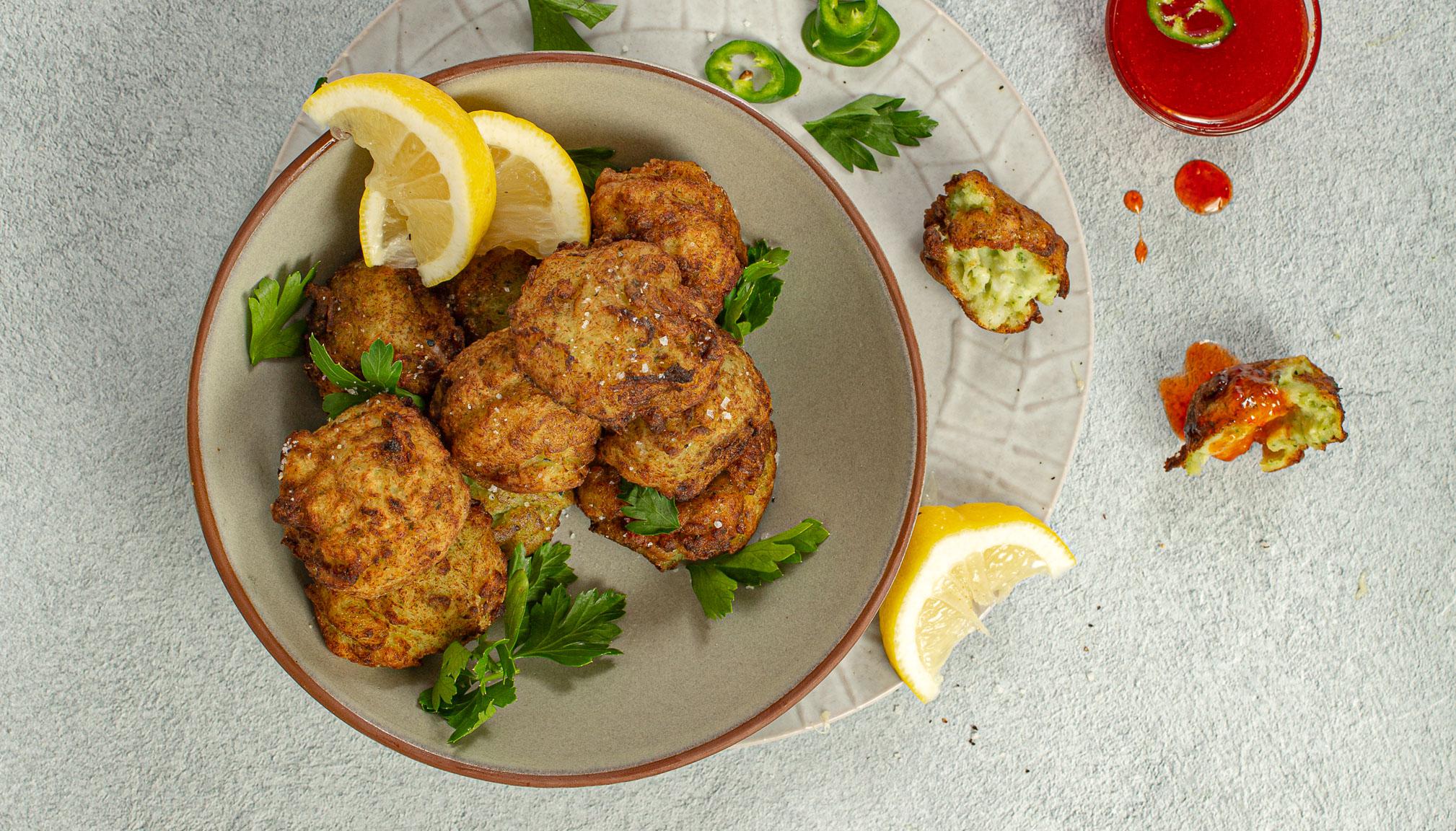 These cod fritters are fluffy on the inside with a crisp outside. The recipe takes inspiration from Caribbean style 'accras' which are made with salt cod, however ours uses unsalted cod fillet. We recommend serving these as an appetiser with a spicy dipping sauce.