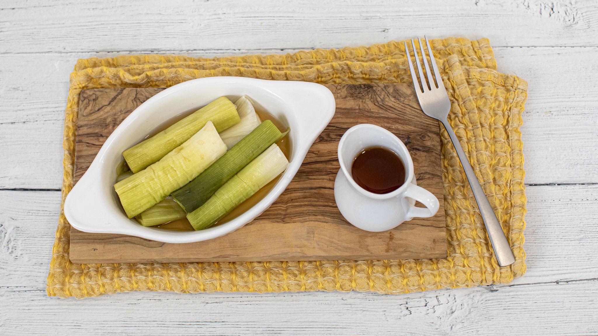 Leeks in vinaigrette is a classic French recipe which turns the humble leek into a delicious side dish, if you don't have golden balsamic vinegar you could try using the juice of a lime and some Dijon mustard combined. Alternatively use our vinaigrette recipe.