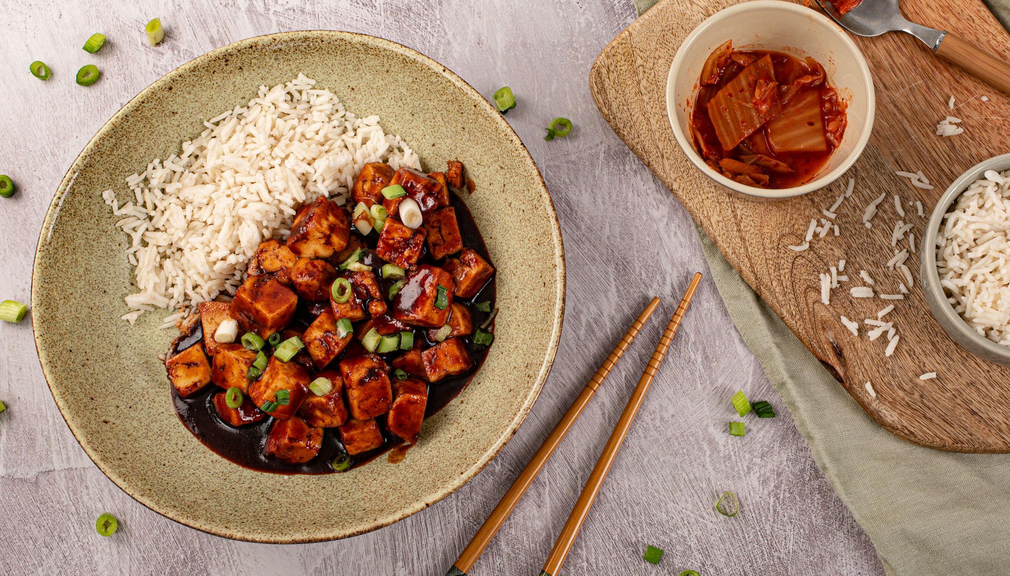 This dish originated in the temples of Korean Buddhist monks, where they have their own cuisine. The monks are forbidden from eating meat, garlic and onions, as they are though to distract from meditation, so the main focus of this recipe is tofu, which is fried until crisp and doused in a sweet, spicy sauce. Serve alongside steamed white rice and kimchi, and top with sesame seeds and sliced spring onions (unless you’re a monk, of course).