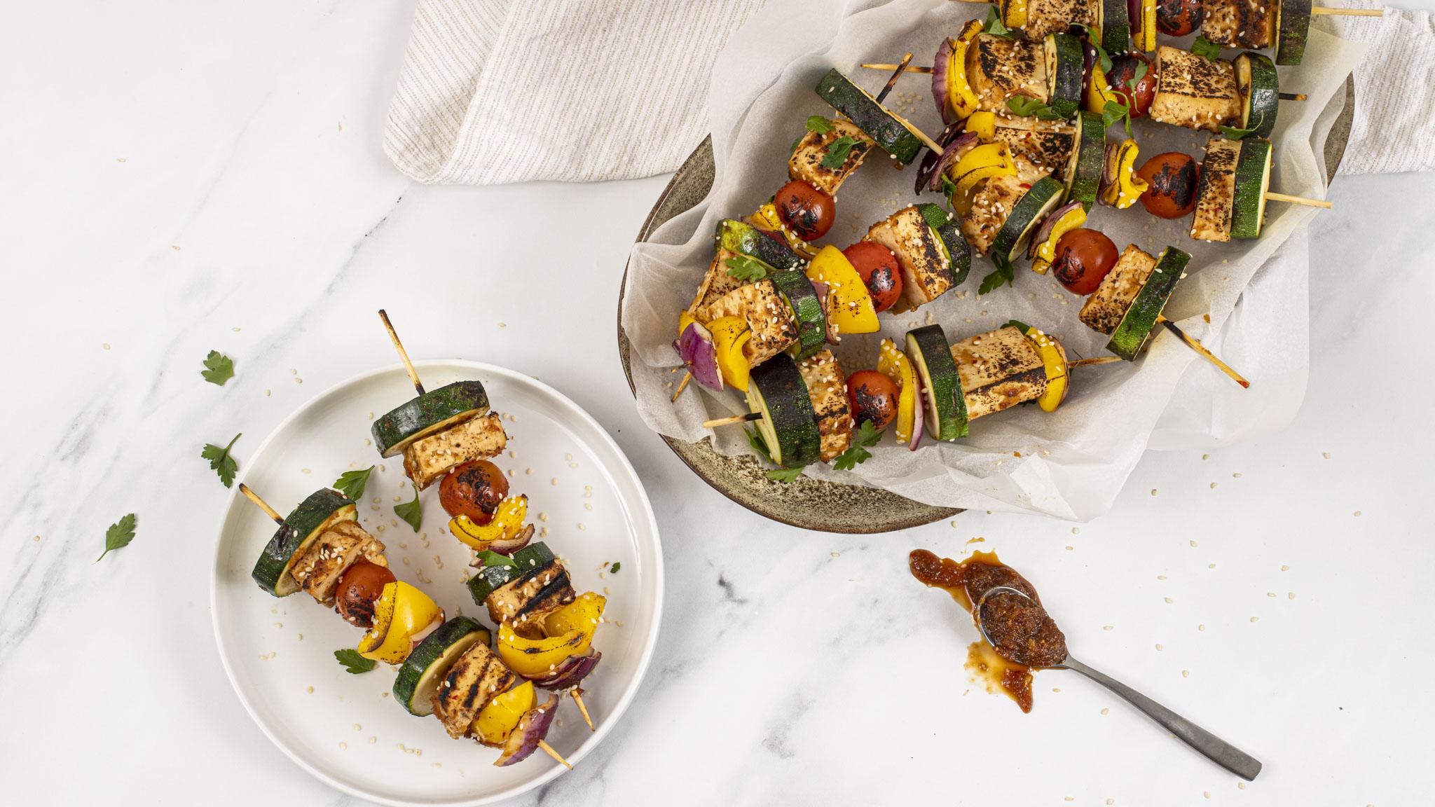 Fire up the grill this summer and make these simple but delicious grilled tofu skewers with mixed vegetables. These can be grilled on a BBQ or griddle for a smoky flavour. If you are using wooden skewers, soak them in water for 10 minutes to prevent them from burning.