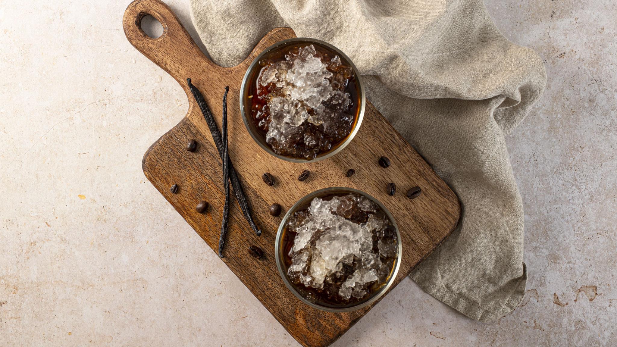 Ice cold coffee granita is a refreshing dessert for a hot day.
