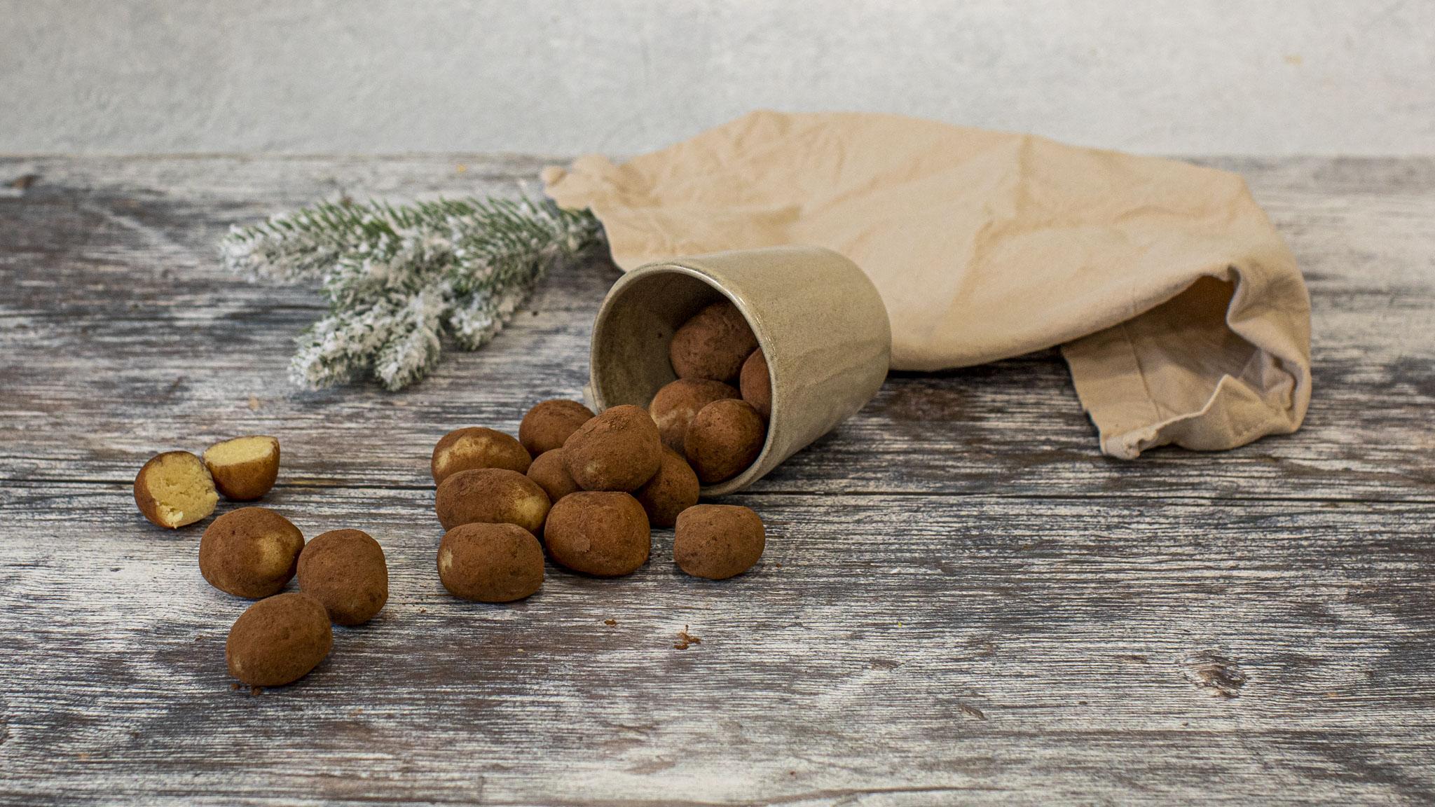 These traditional German Christmas sweets are made from homemade marzipan coated in cocoa powder. Serve after dinners or give as gifts.