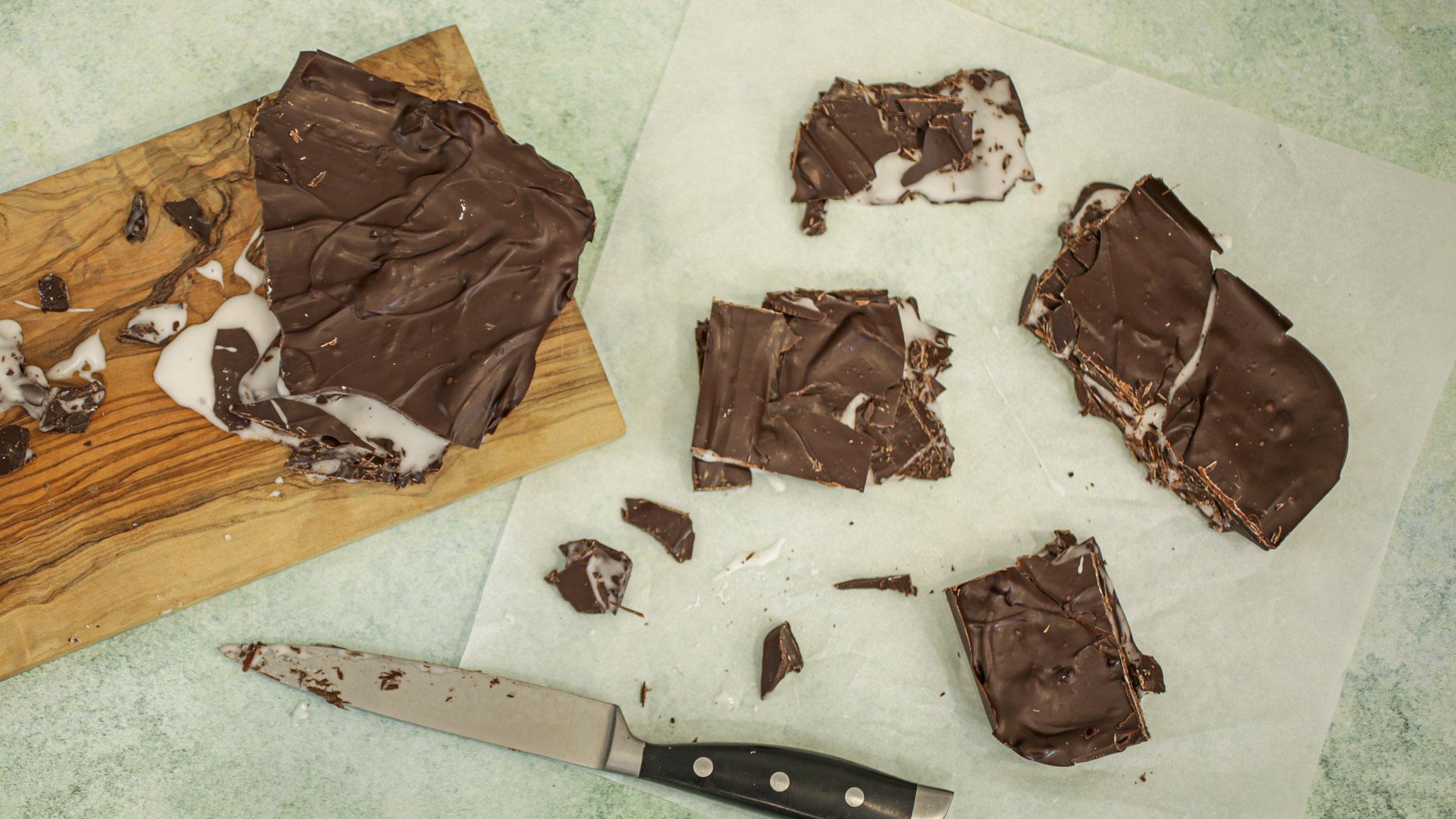A dark chocolate shell surrounding a minty, sugary filling. We have done a thinner layer of the mint filling, but feel free to adjust the amount to suit your taste as well as adjusting the mint flavouring, if you need to.