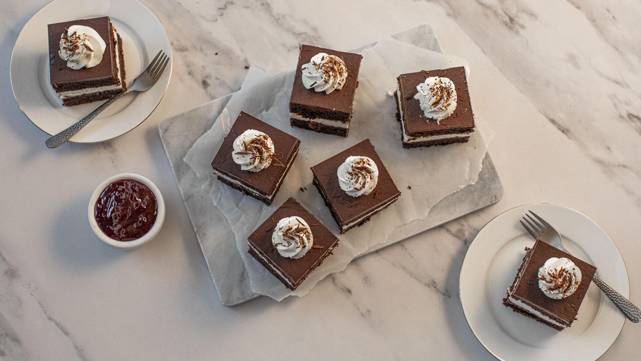 Reigning to this day Queen of Polish pastry shops. This delicious cake with the mysterious name Wuzetka was created for a competition that was announced in the 1940s. The contest task was to come up with a cake that could become a new symbol of the Polish capital. Classic Polish cake that is sure to delight any sweet tooth. This decadent treat features layers of moist chocolate sponge cake sandwiched together with rich whipped cream and topped with a generous layer of chocolate icing, substituted sometimes with a thick layer of coffee and cocoa. The combination of the tender cake, luscious cream filling, and glossy frosting creates a harmonious balance of flavours and textures. Wuzetka is a beloved dessert in Poland, often enjoyed on special occasions or as a sweet indulgence to accompany a cup of coffee.
