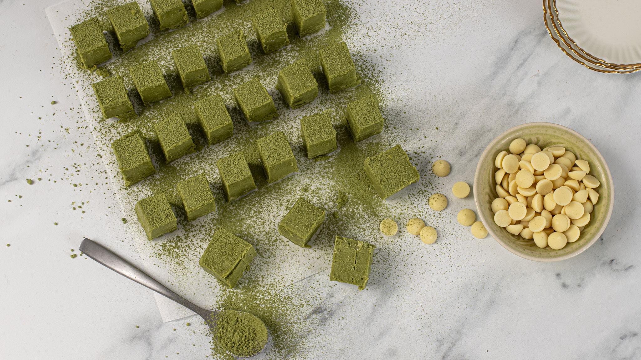 Made with only six ingredients, this matcha nama chocolate is a popular sweet snack in Japan and is flavoured with matcha and vanilla. The vibrant green ganache is quick and simple to make, then simply set in the fridge, dust with more matcha powder, and enjoy. Keep the chocolate refrigerated for up to five days.