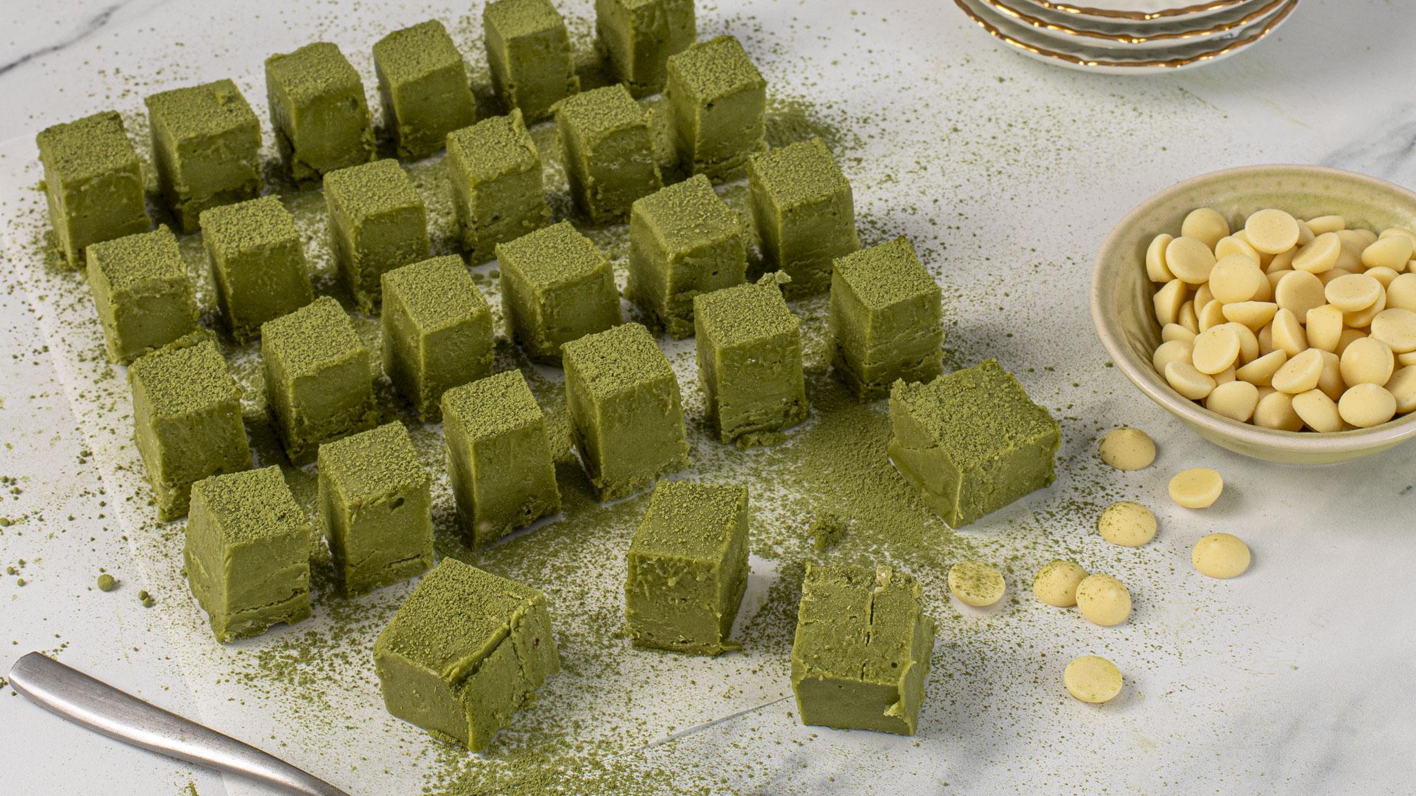 Matcha nama chocolate has a luxuriously smooth, melt-in-your-mouth texture, infused with vanilla and matcha for a decadent sweet snack. This recipe is made vegan by replacing the chocolate in the ganache element with cacao butter, which gives the same delicious result. Keep the chocolate refrigerated for up to five days.
