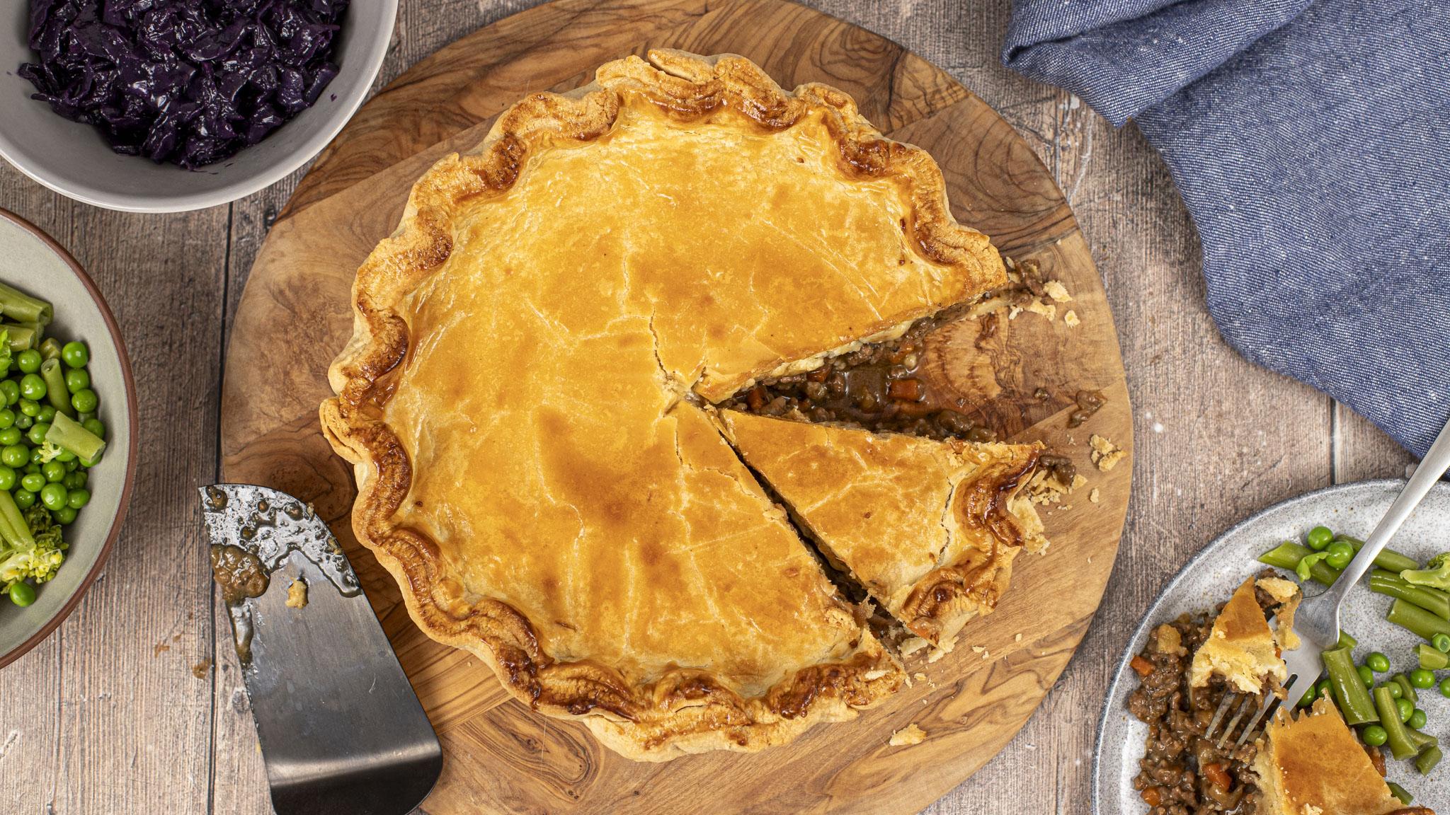 A rich, comforting meal fit for any dinner party or celebration, this pie is packed with beef and onions, and topped with a layer of sharp cheddar which is sure to be a hit at the dinner table. Any leftovers will last for up to three days in the fridge, or the pie can be made ahead and frozen before baking – simply defrost in the fridge overnight before baking.