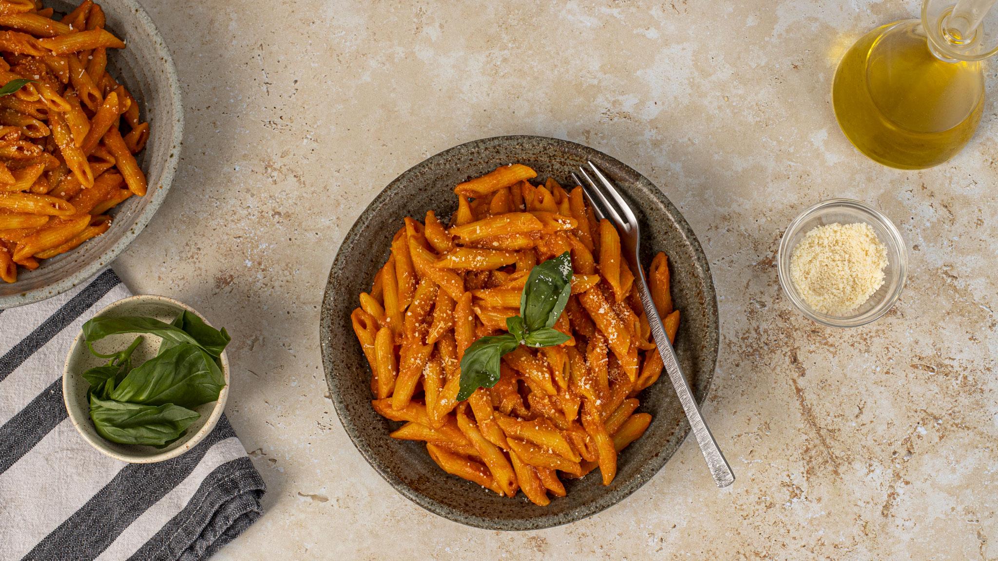 Silky smooth and packed with sweet and acidic tomatoes, this creamy pasta is given a boost with the addition of vodka, which helps to bring all the delicious flavours together. Any leftovers can be refrigerated in an airtight container for up to three days.