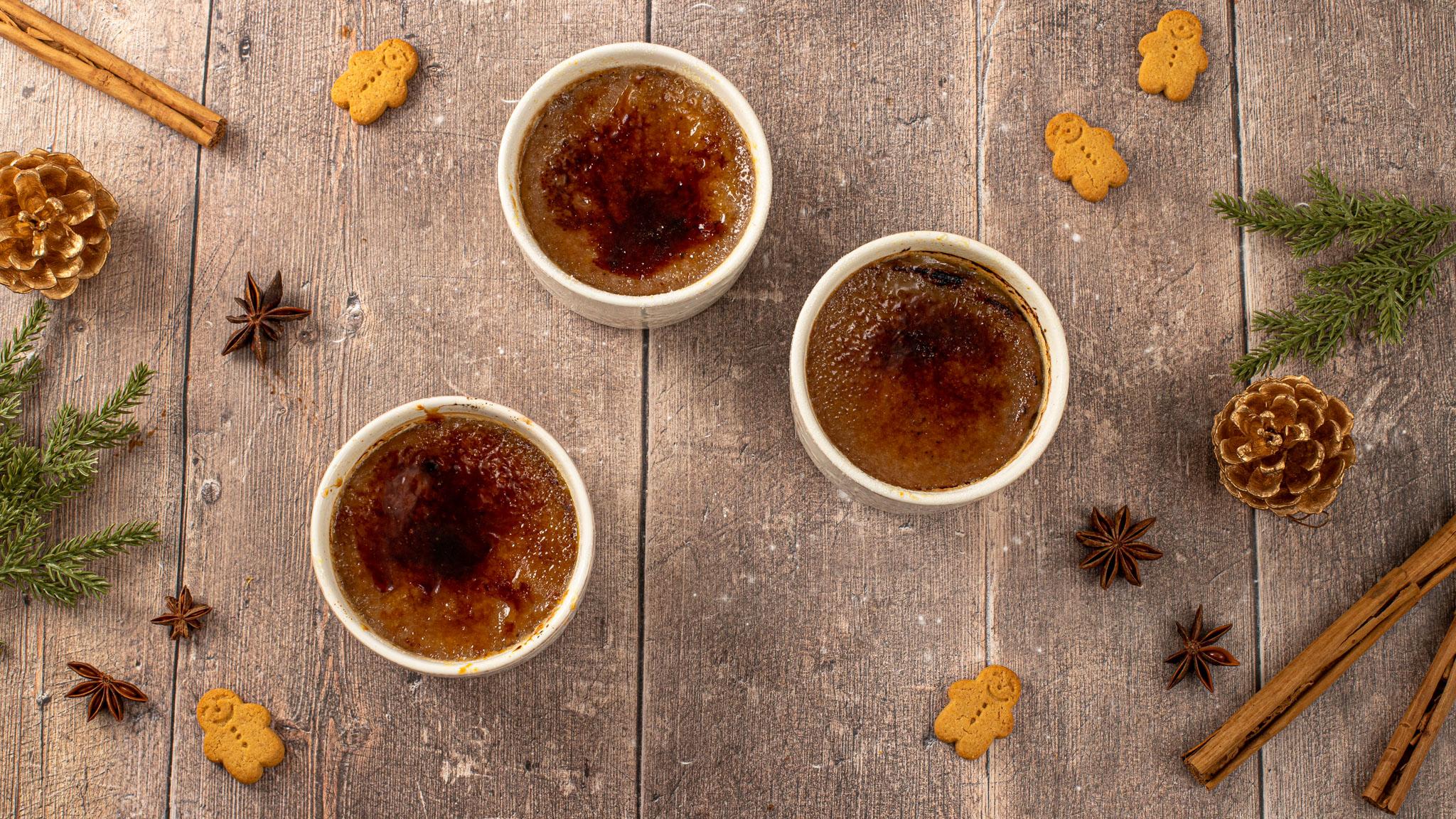 Gingerbread crème brûlée is a decadent dessert that combines the rich and creamy texture of classic crème brûlée with the warm and spicy flavours of gingerbread. The dessert is made by infusing the custard base with ginger, cinnamon, nutmeg, and other festive spices. The mixture is then baked in a water bath until it sets, creating a silky smooth and velvety texture. Just before serving, a layer of sugar is sprinkled on top of the custard and caramelised with a kitchen torch to create a crispy and caramelised topping. The result is a dessert that is both indulgent and comforting, perfect for any holiday gathering or special occasion