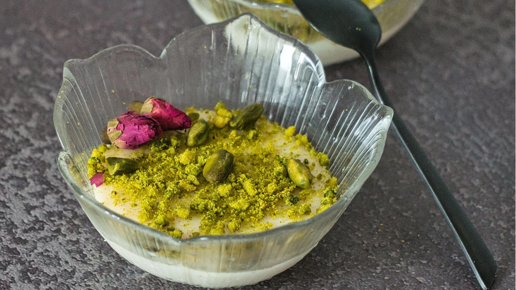 A quick and tasty recipe. Head for the sunshine with this oriental panna cotta, flavoured with orange blossom and a few pistachios. You can garnish the Mhalabia with a teaspoon of rose petal jam or rose petal honey before adding the pistachios. User generated recipes have not been re-tested by Kenwood.