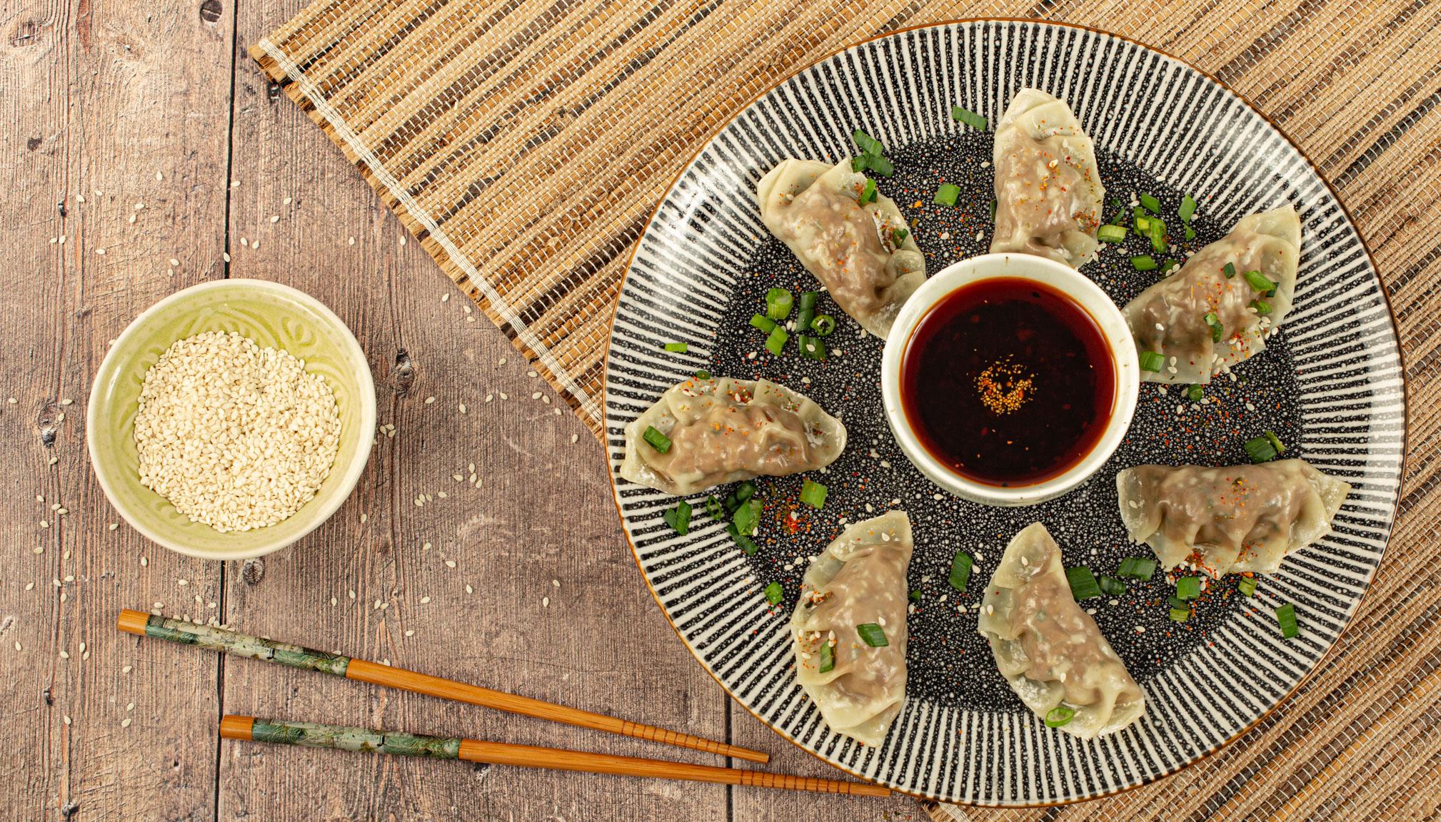 Loaded with pork, cabbage, chives and soy, these Japanese dumplings are so simple to make and are sure to impress your friends! This recipe makes 28 dumplings so you can always freeze half before steaming to keep your freezer stocked up. To get the traditional crisp-bottomed dumpling synonymous with gyoza, heat 1 tbsp vegetable oil in a frying pan over a medium heat and fry the bottom of the dumplings until crisp, then transfer to the steaming basket and continue as instructed.