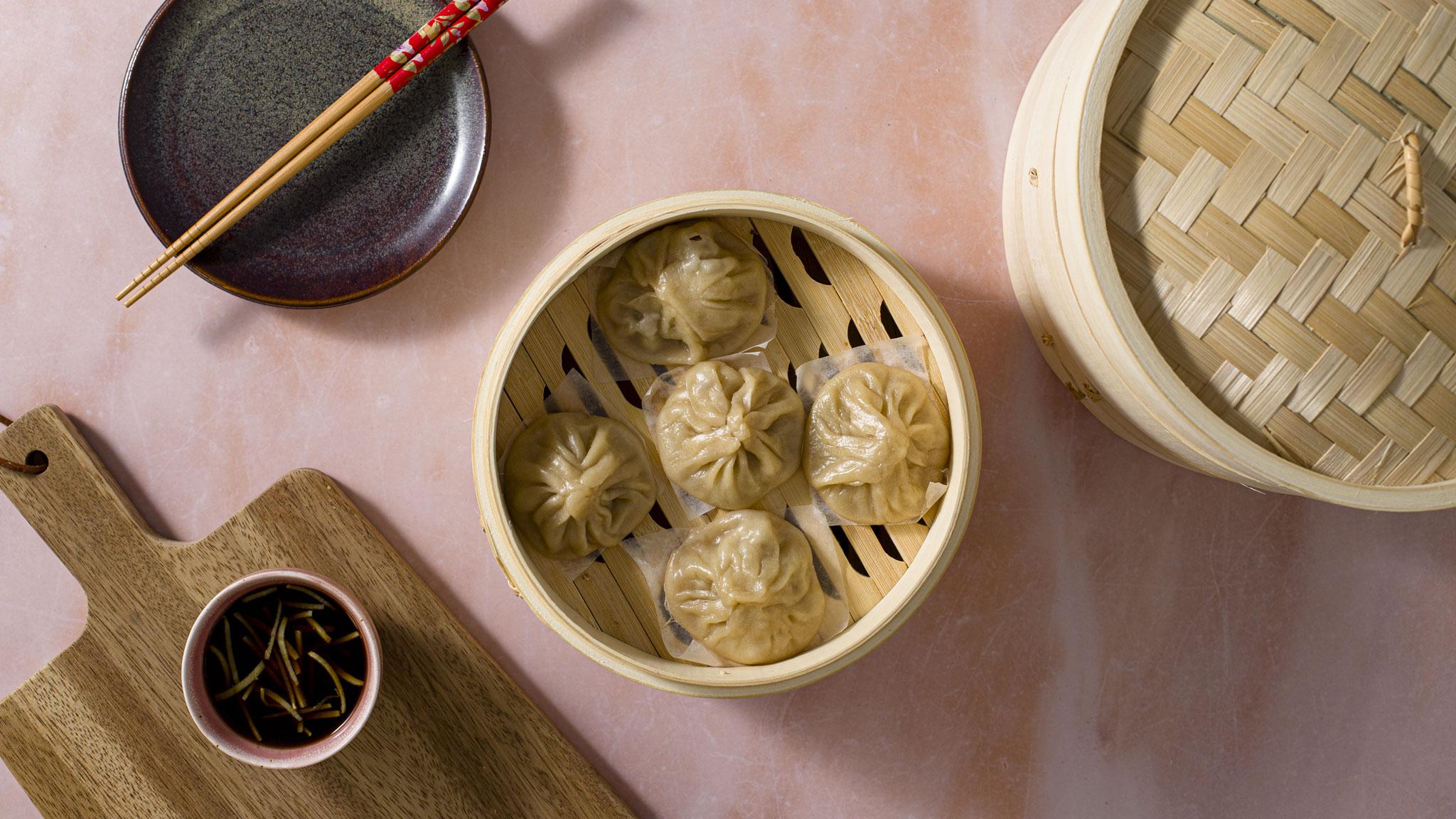 Xiaolongbao, or Chinese soup dumplings, are the star of the show at any dim sum feast. A thin dough is filled with juicy pork and aromatics, along with a set pork stock that melts back into a deliciously savoury soup when steamed. To eat, simply poke a hole in the dumpling with a chopstick, allow to cool slightly, then slurp the soup from the dumpling before eating in one perfect bite. For best results, use pork with 30% fat content and a bamboo steamer.