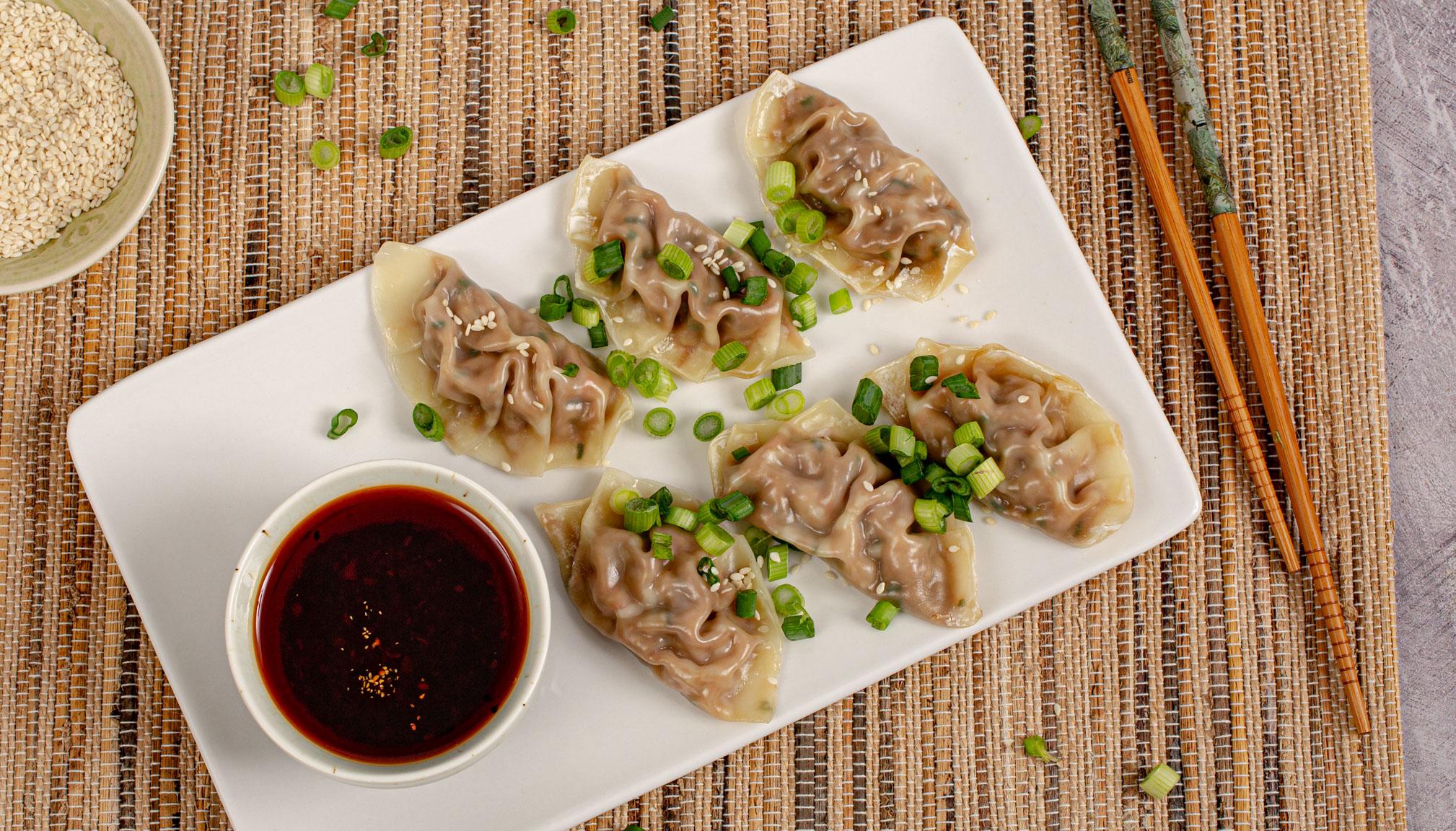 Juicy prawns seasoned with garlic ginger, chives and soy fill these flavourful dumplings; ideal for entertaining or eating alone. This recipe makes 26 dumplings, so you can always freeze half before steaming to keep your freezer stocked up. To get the traditional crisp-bottomed dumpling synonymous with gyoza, heat 1 tbsp vegetable oil in a frying pan over a medium heat and fry the bottom of the dumplings until crisp, then transfer to the steaming basket and continue as instructed.
