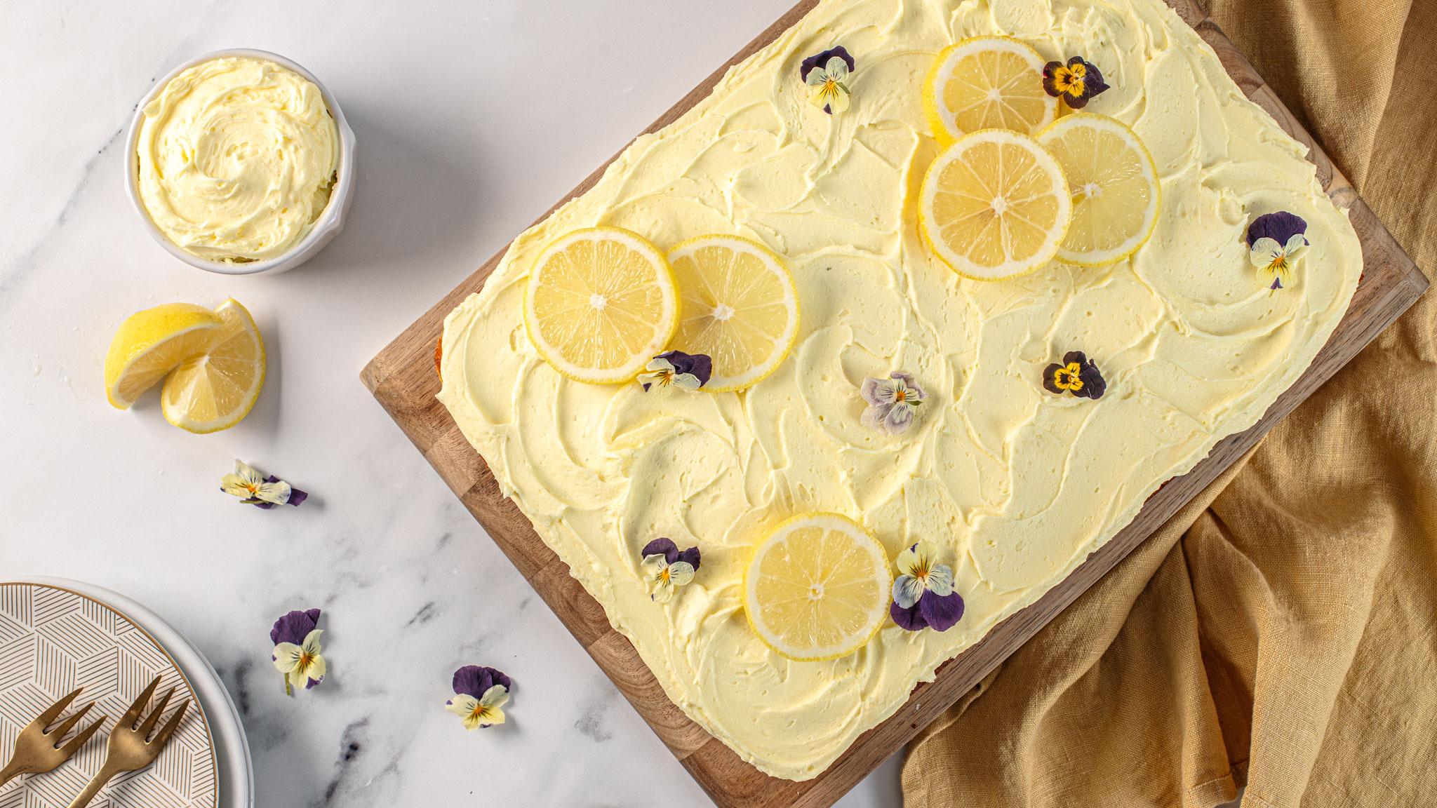 Indulge in a burst of zesty delight with our lemon drizzle inspired sheet cake, perfect for a wide range of celebrations. This moist and delicious lemon-infused cake boasts a tangy citrus punch, generously soaked in a sweet lemon drizzle syrup for that extra burst of flavour. Decorated with a velvety lemon buttercream frosting, it's a classic delight that will brighten any occasion. Whether you're celebrating birthdays, anniversaries, or simply craving a taste of lemon, our Lemon Sheet Cake is the ultimate treat to elevate your celebrations. Store covered at room temperature for up to three days.