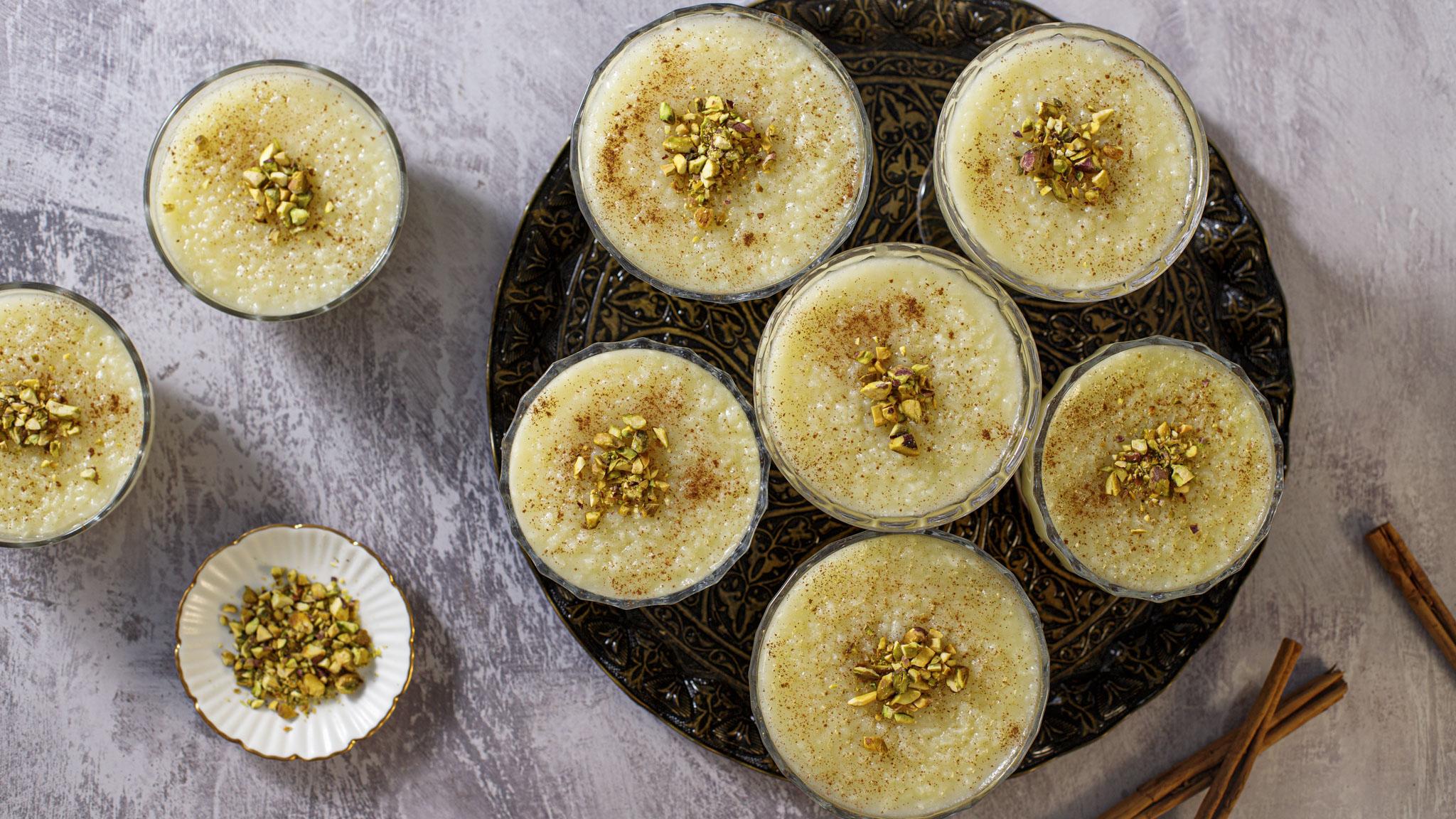 Sholeh Zard is a sweetened Persian rice pudding, cooked until soft and flavoured with aromatic cardamom, rosewater, and saffron, which gives this delicate dessert its sunny yellow colour.