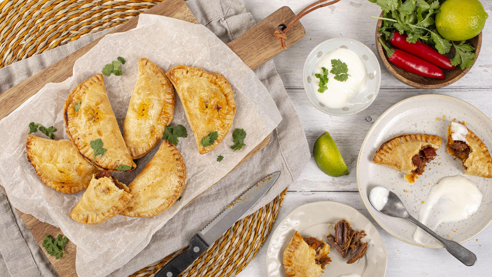The spiced beef filling of these pastries is slow cooked until tender, we think they are well worth the wait. Use our shortcrust pastry recipe or purchase premade.