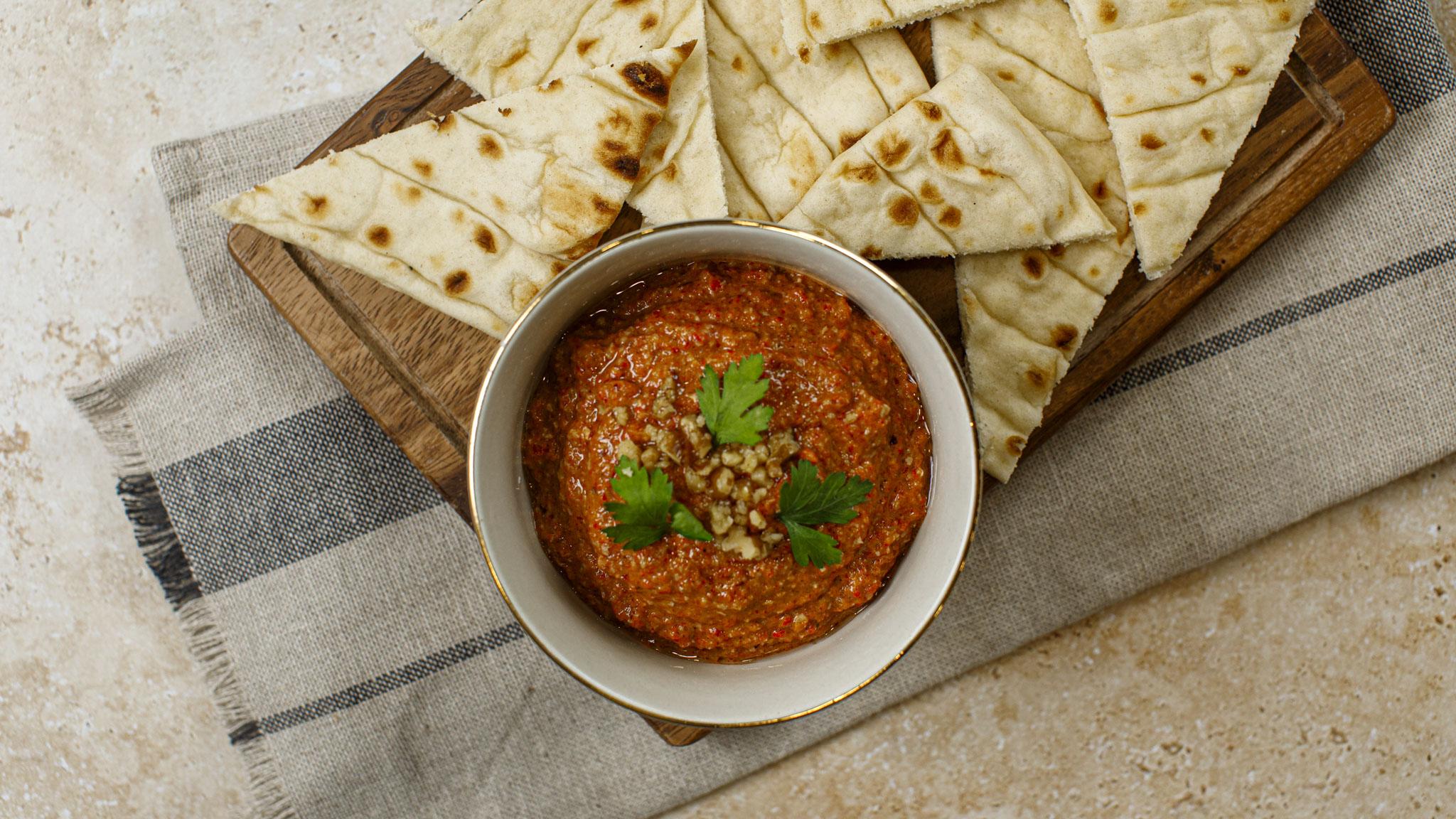 A Middle Eastern inspired roasted red pepper dip. It's a little savoury, a little sweet and a bit smoky. Enjoy with warm flatbread or with chicken or fish. Appliance: MultiPro Go