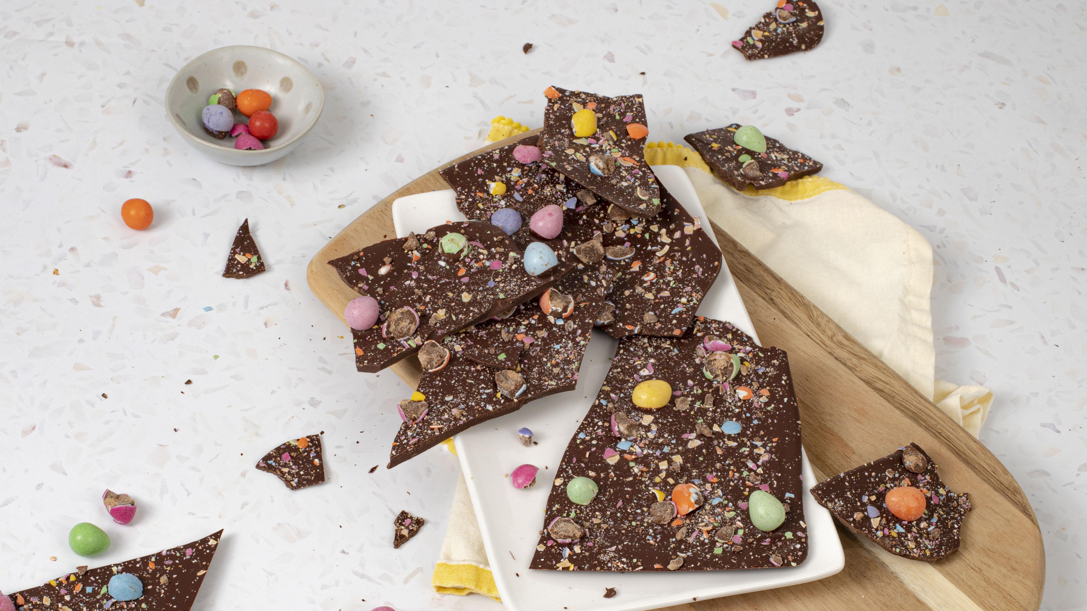 Chocolate bark is a quick way of making personalised chocolate gifts, this is an Easter version which uses lightly crushed mini chocolate eggs, however you could personalise it by using sweets or sprinkles of your choice. For best results use a good quality chocolate with a high cocoa content and allow the chocolate to set at room temperature if you have time, this will help prevent the chocolate from 'blooming'- where a white chalky finish appears on the chocolate.