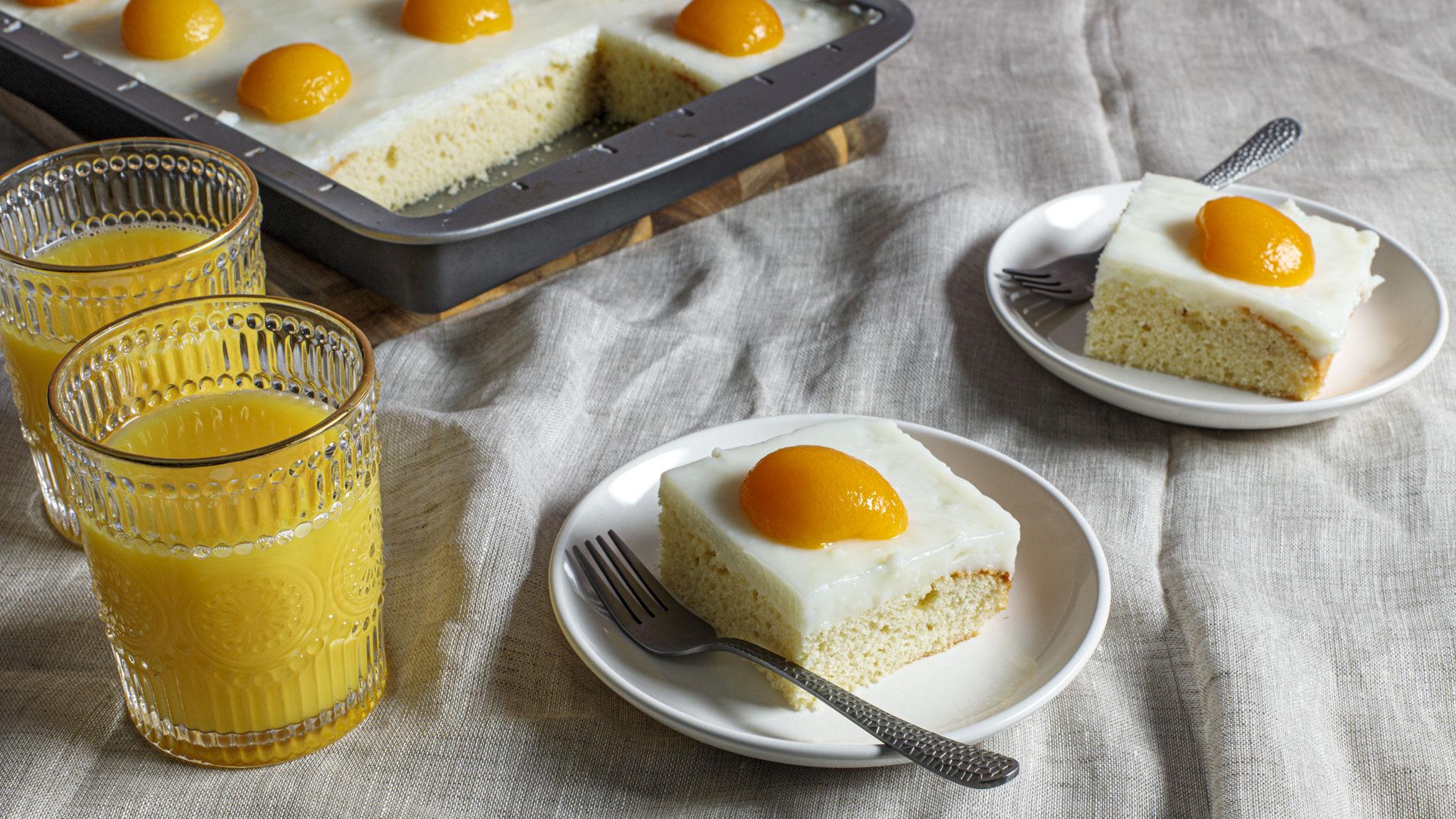A fluffy sponge topped with a vanilla custard and apricots. This cake is a popular cake in Germany for Easter. We recommend using a larger traybake tin as the topping needs to be poured into the tin and set. For baking, use a large, deep sided traybake tin, at least 25 cm x 30 cm.