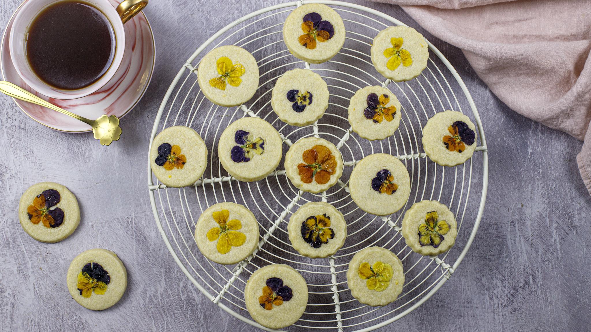 Lemon Biscuits with Edible Flowers