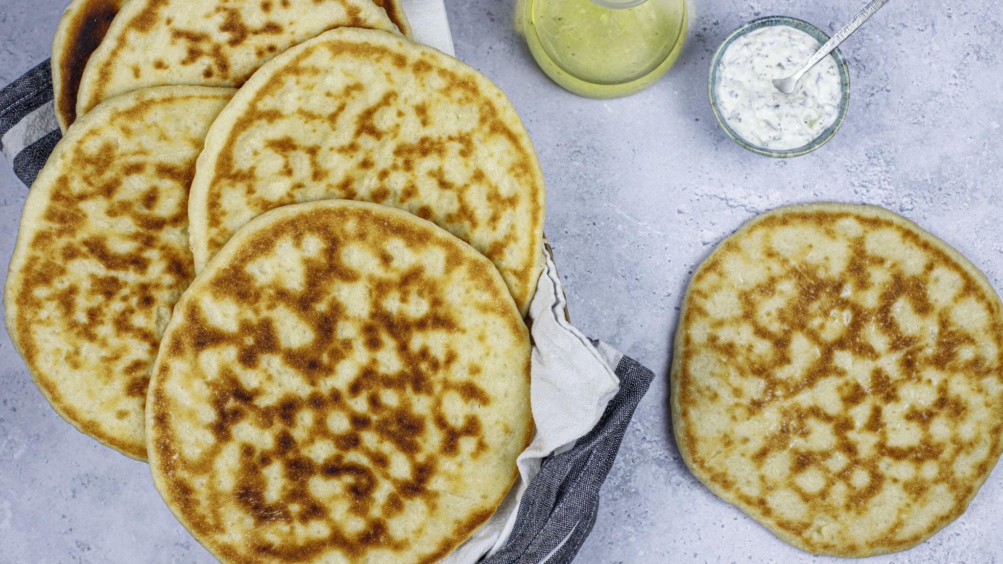 These light and fluffy flatbreads are great for serving with dips, stews and as the base for delicious grilled souvlaki.