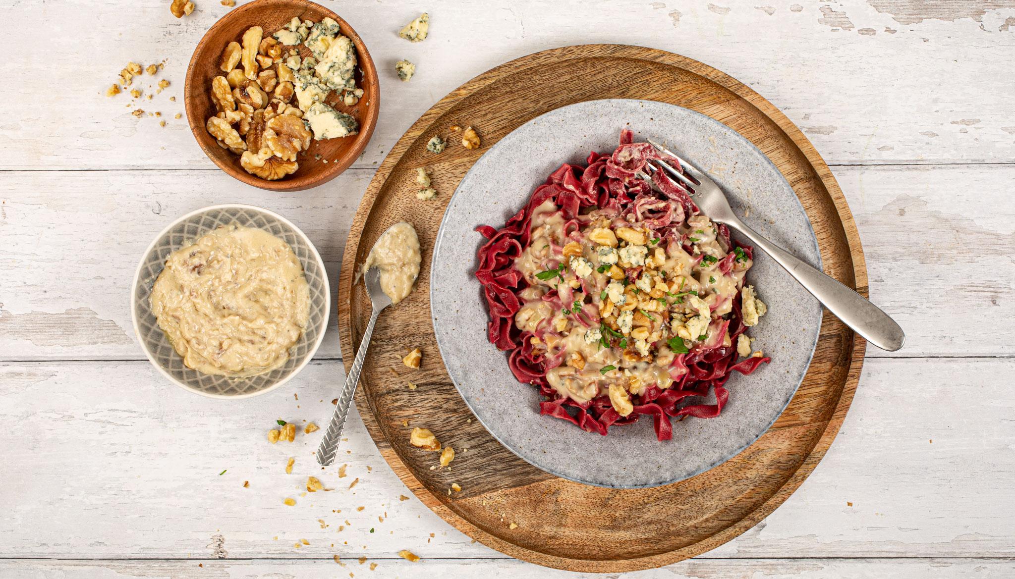 A delicious pasta with a twist. The beetroot turns the dough into a beautiful pink colour and the walnut sauce makes this dish rich and full of flavour. You can use the pasta once dried or cover and chill in the fridge for up to 24 hours