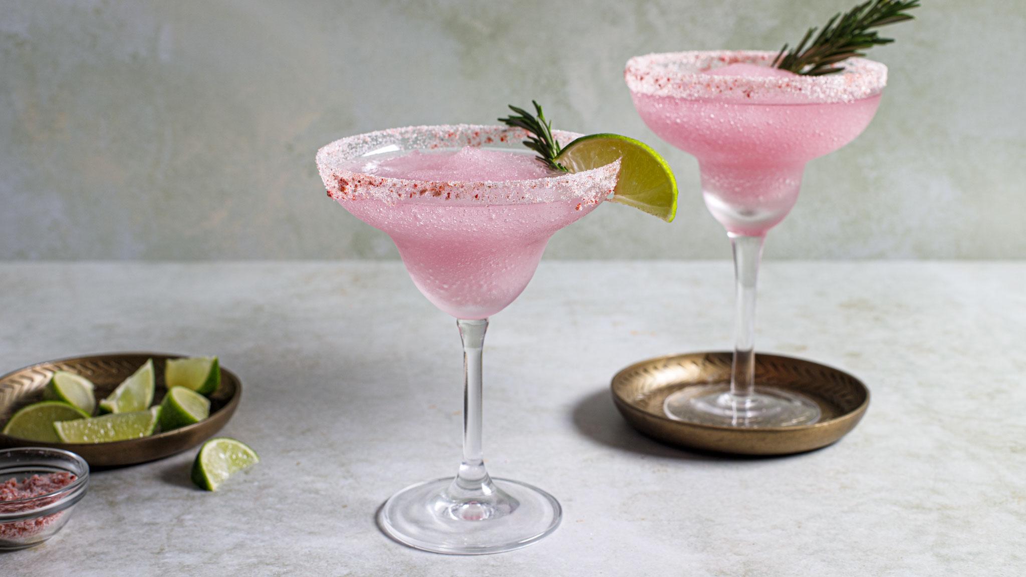 These sweet and tangy cocktails are great for the holiday season. We've garnished ours with rosemary and rimmed the glasses with a mix of sugar and crushed pink peppercorns for a fruity, spicy kick.
