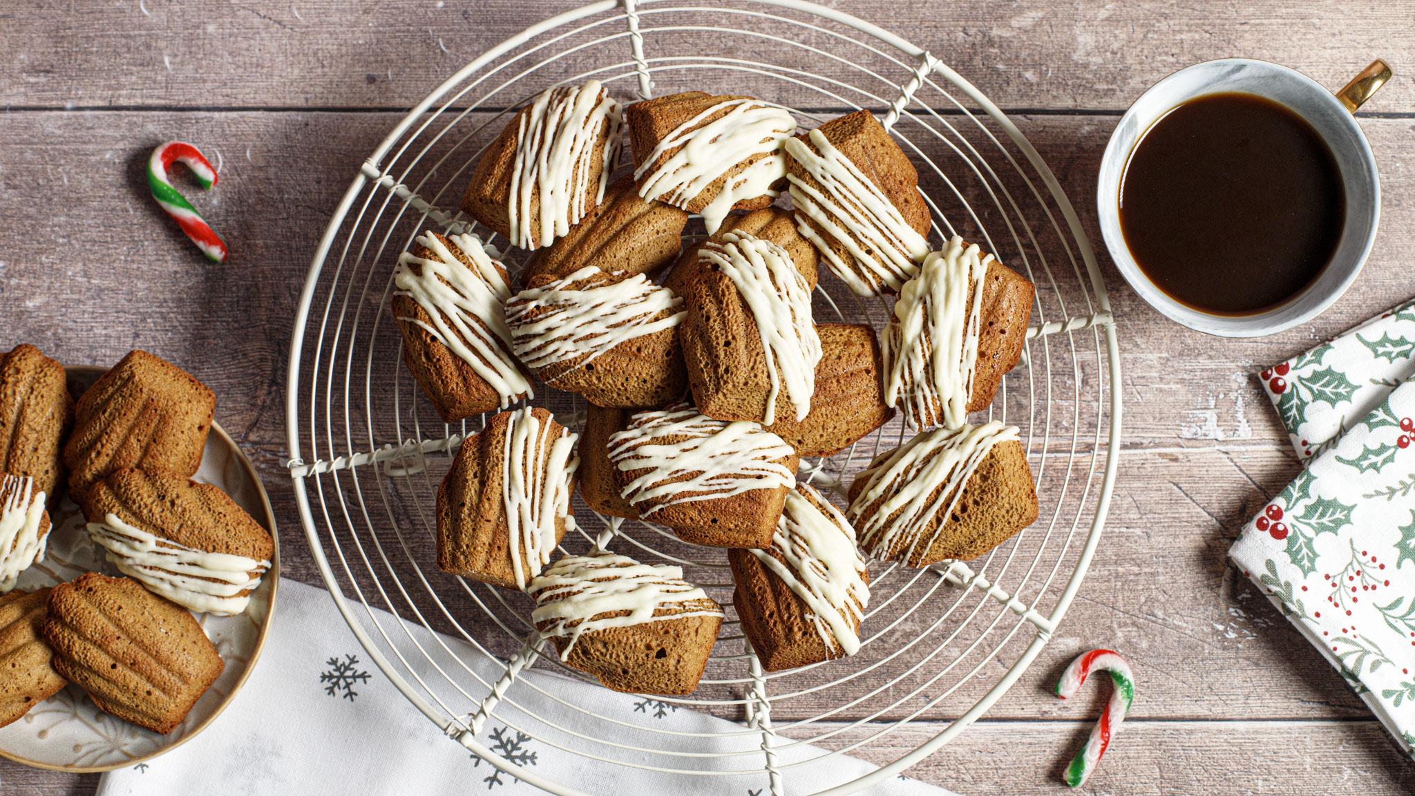 These Gingerbread and White Chocolate Madeleines bring a festive twist to the classic French bake. Lightly spiced with the warmth of gingerbread and finished with a drizzle of white chocolate, they make a simple yet elegant treat for Christmas. Store in an airtight container for up to 3 days.
