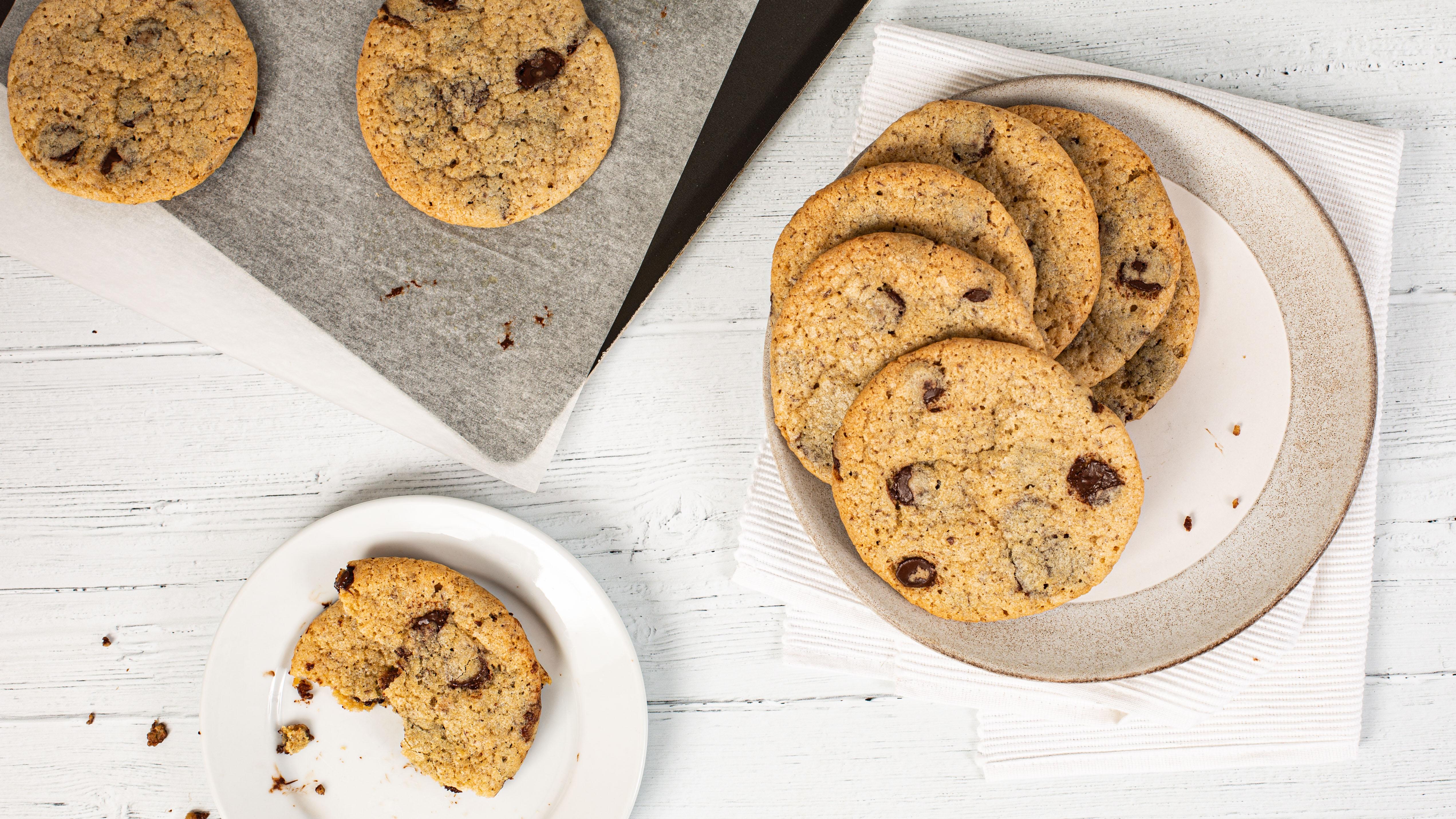 These cookies are a quick and easy vegan alternative, just as chewy and chocolatey as cookies should be! The egg substitute is a combination of ground flax seeds and water, which is mixed and set aside for a few minutes beforehand and we used a non-dairy margarine instead of butter.