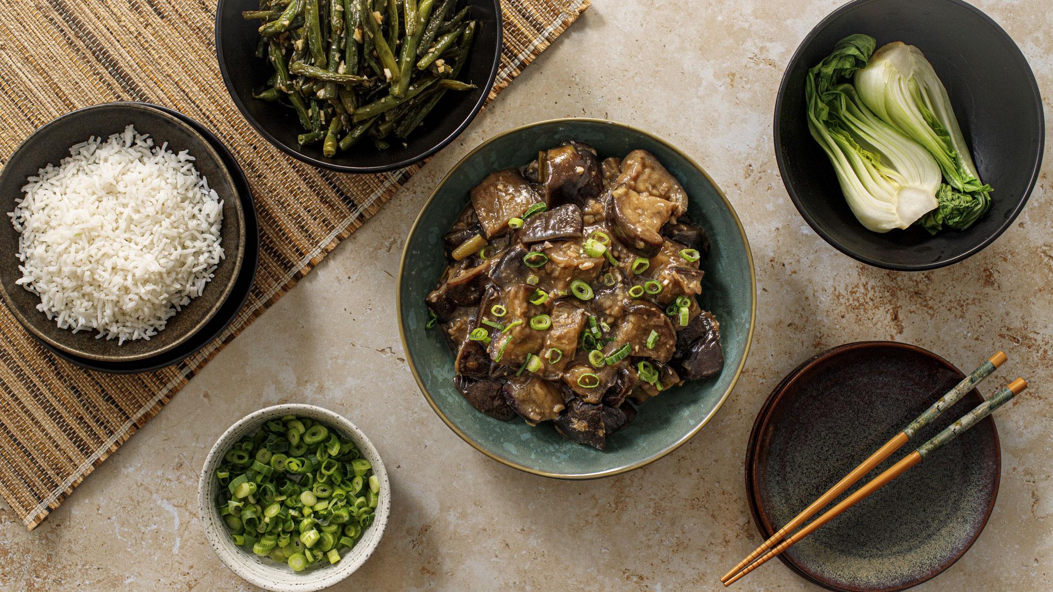 These braised aubergines are the perfect sweet and savoury side dish to any Chinese feast and could even be served alongside steamed rice and vegetables as a vegan main course. Flavoured with garlic, ginger, spring onion, and Sichuan peppercorns, this dish has the perfect balance of aromatics and spice.