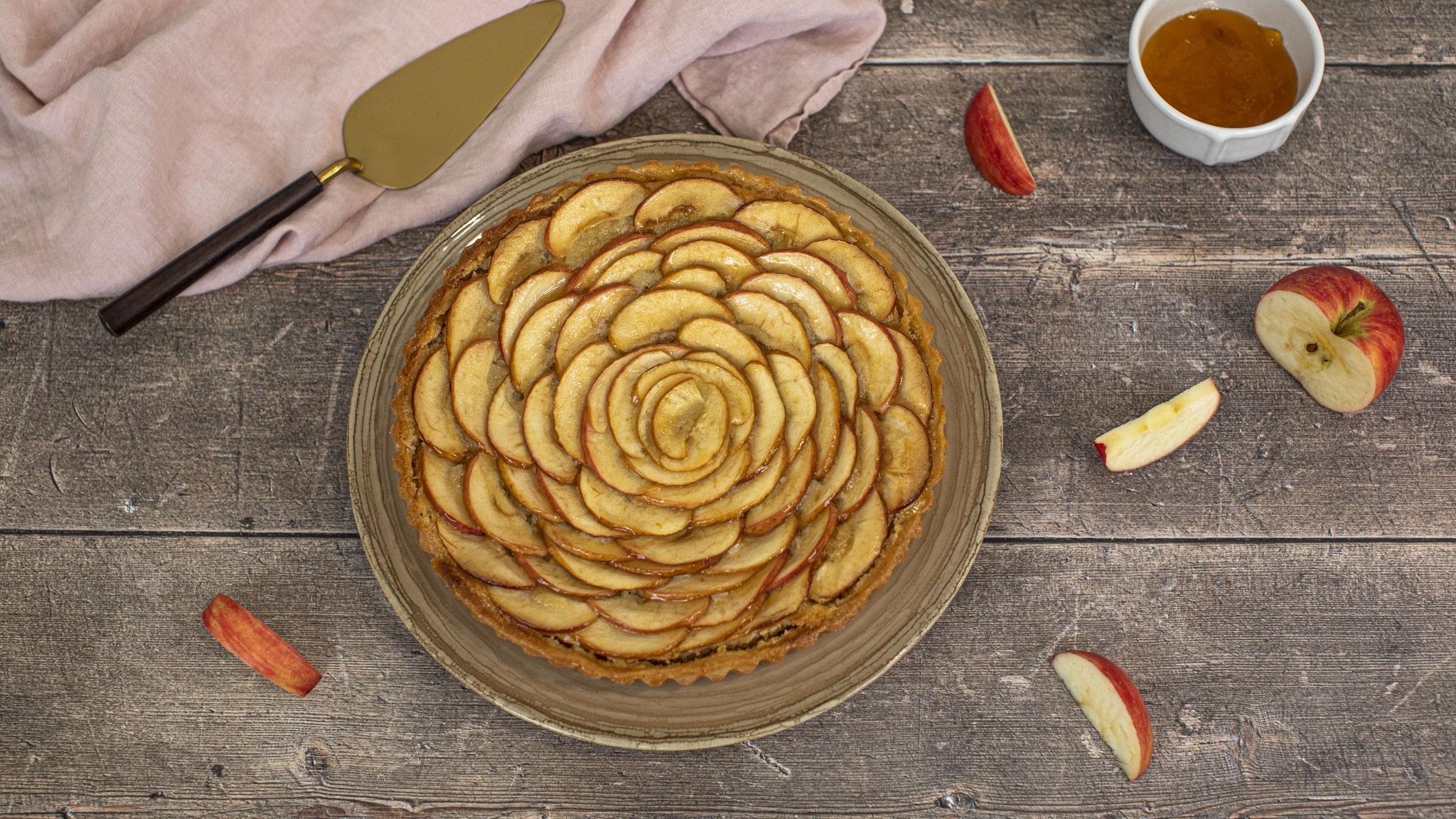 French Apple Tart (Tarte Normande) is a French dessert that features signature ingredients from the northern region of the country. Apples, brandy and butter combined in a delicious dessert that is as simple to make as it is elegant to look at. You can omit the brandy for an alcohol-free version.