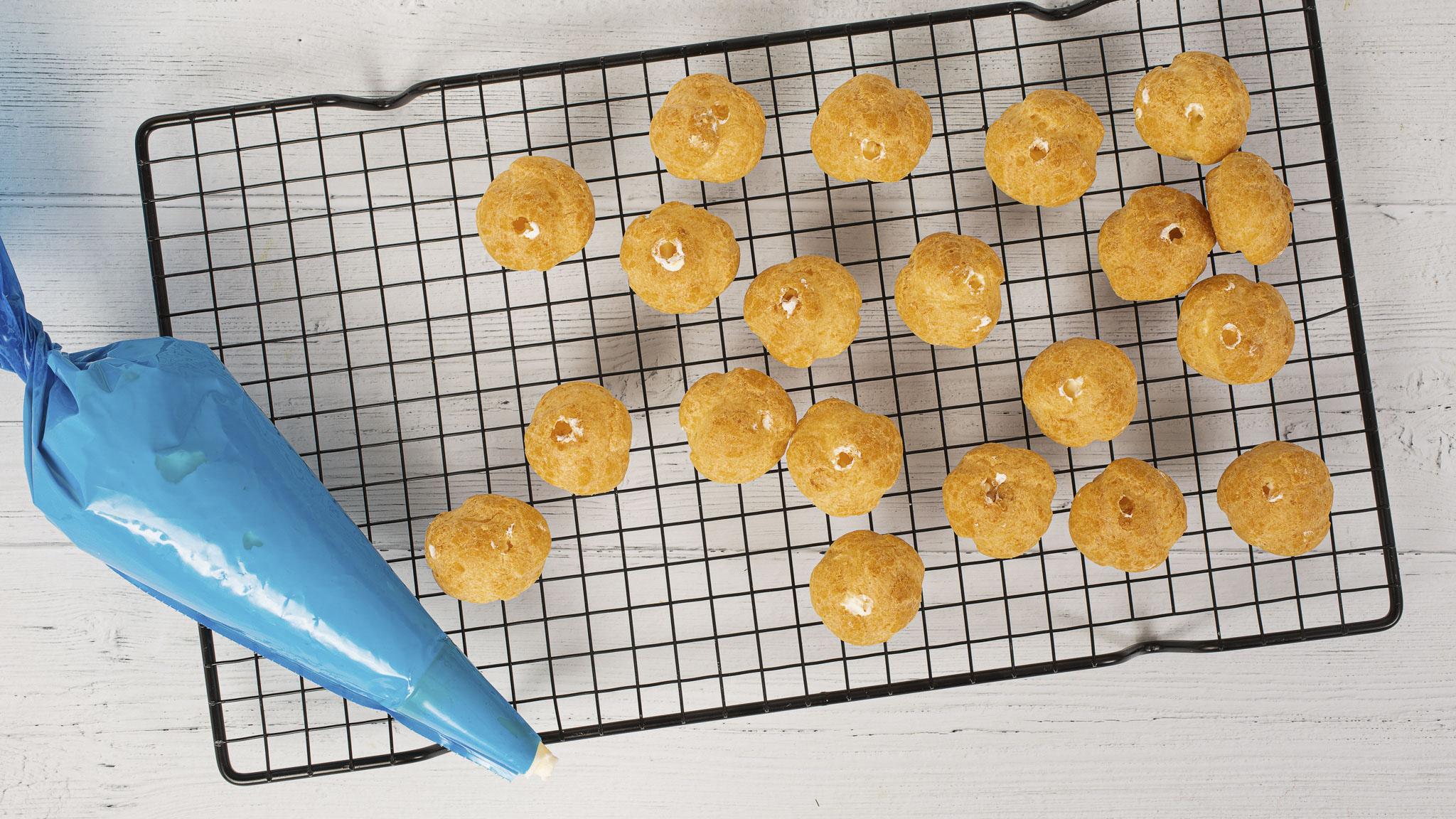 Choux pastry is a light pastry dough used for making profiteroles, choux buns and eclairs. This recipe shows you how to make the basic pastry mixture, once the mixture is ready you can use this recipe to make eclairs or find our recipe for choux buns which will show you how to use this pastry mixture to make round bun shapes. The raw choux pastry may be frozen.