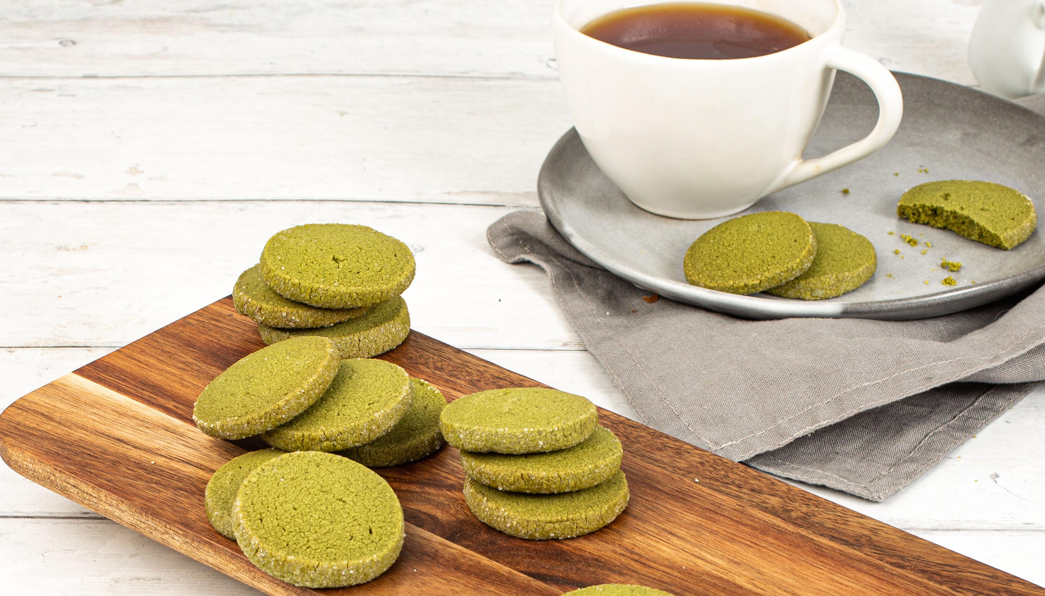 These matcha tea sable biscuits are easy to make and the deep mossy green colour of the matcha remains vibrant even after baking.