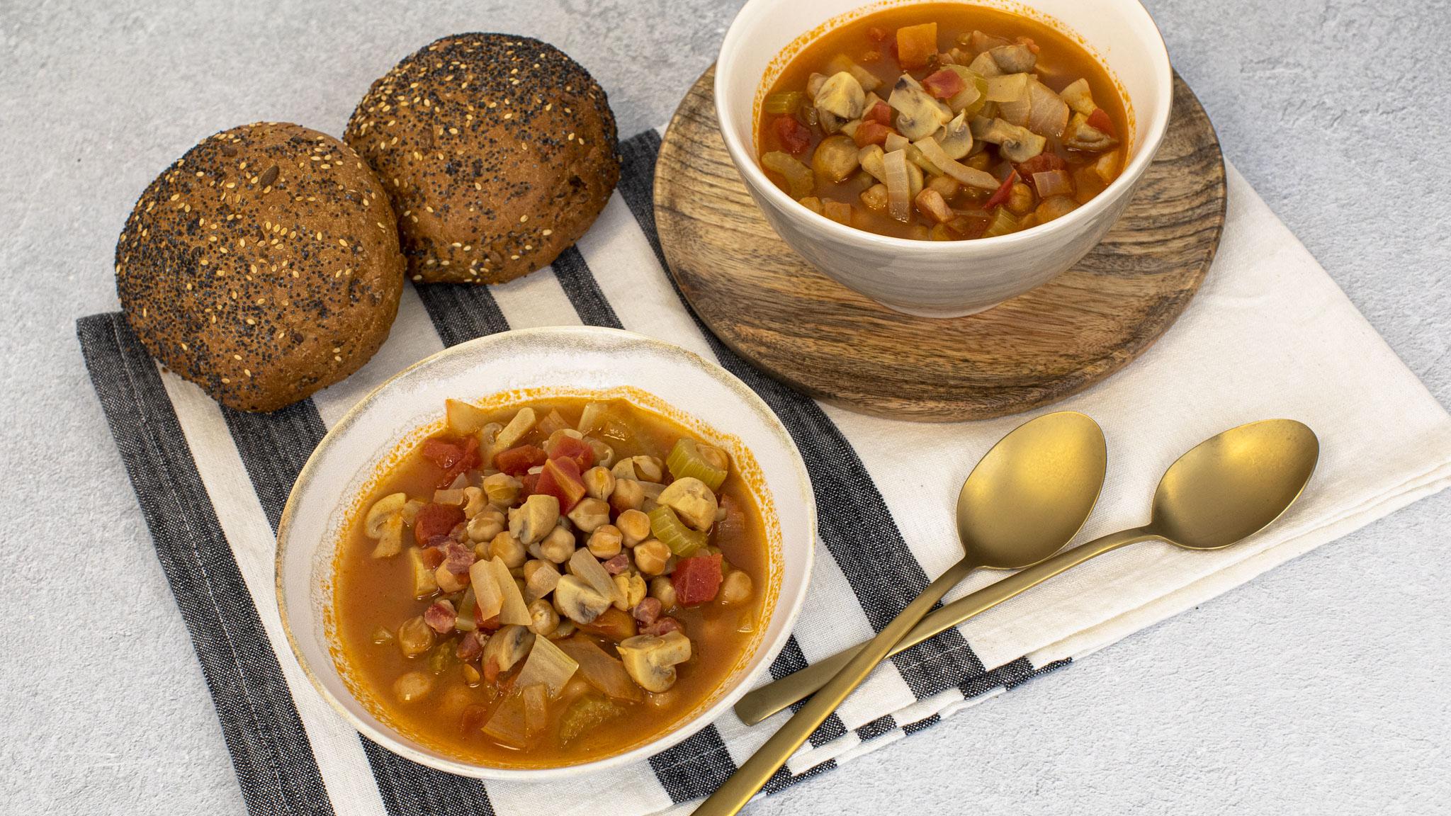 Minestrone soup with mushrooms